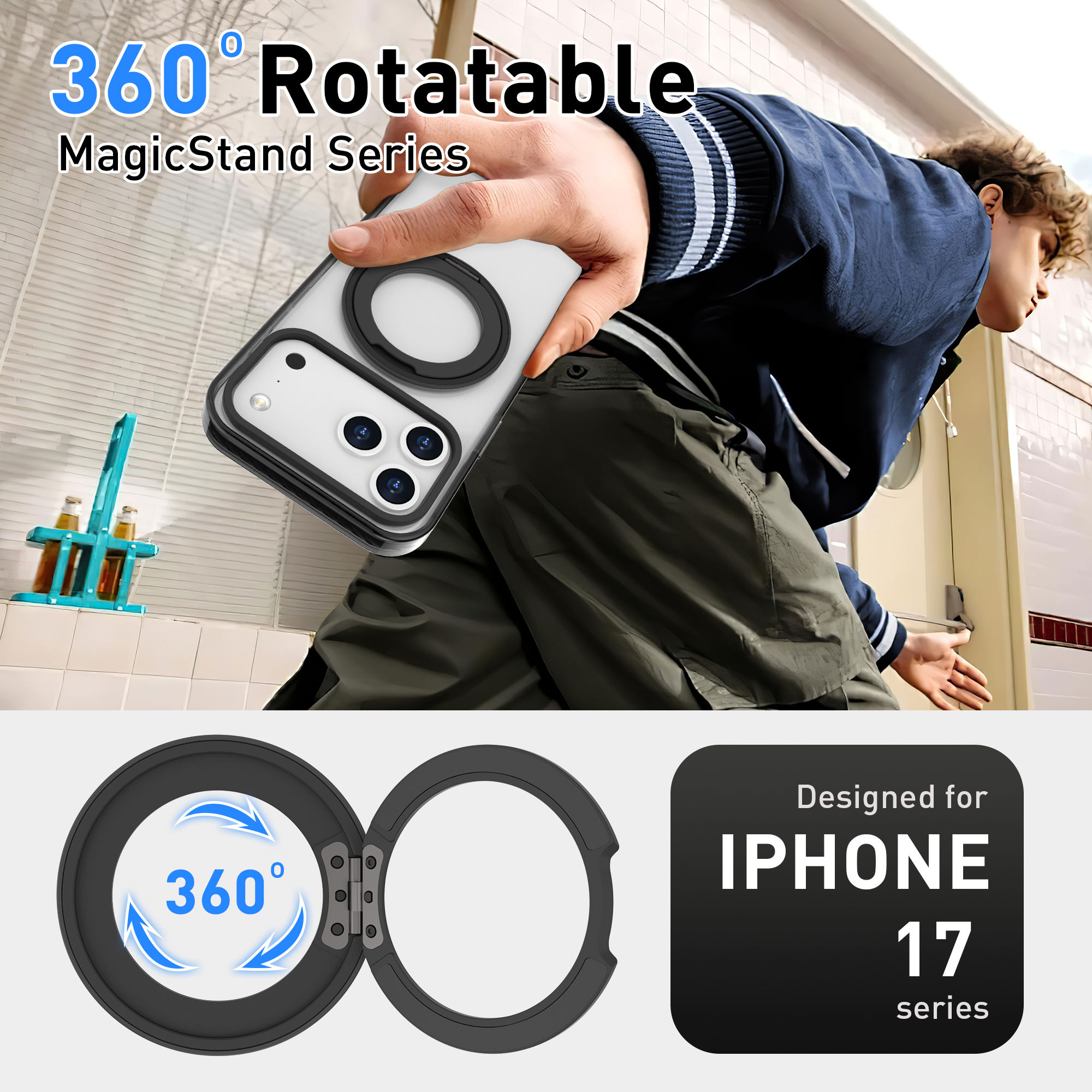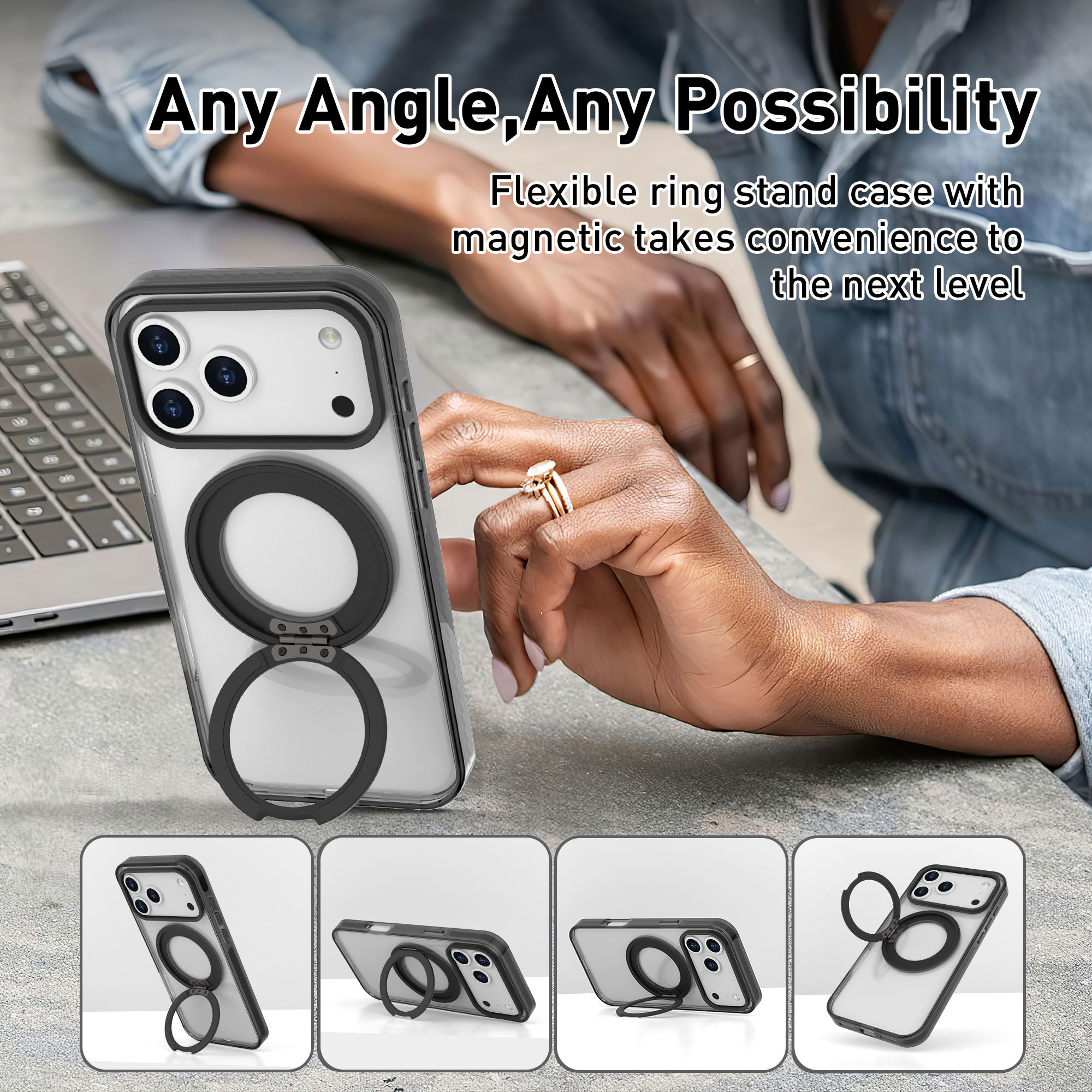 Custom Transparent Magnetic Phone case with 360°Rotatable Invisible O-Ring Stand Holder for iPhone 17 Pro Max Shockproof Slim
