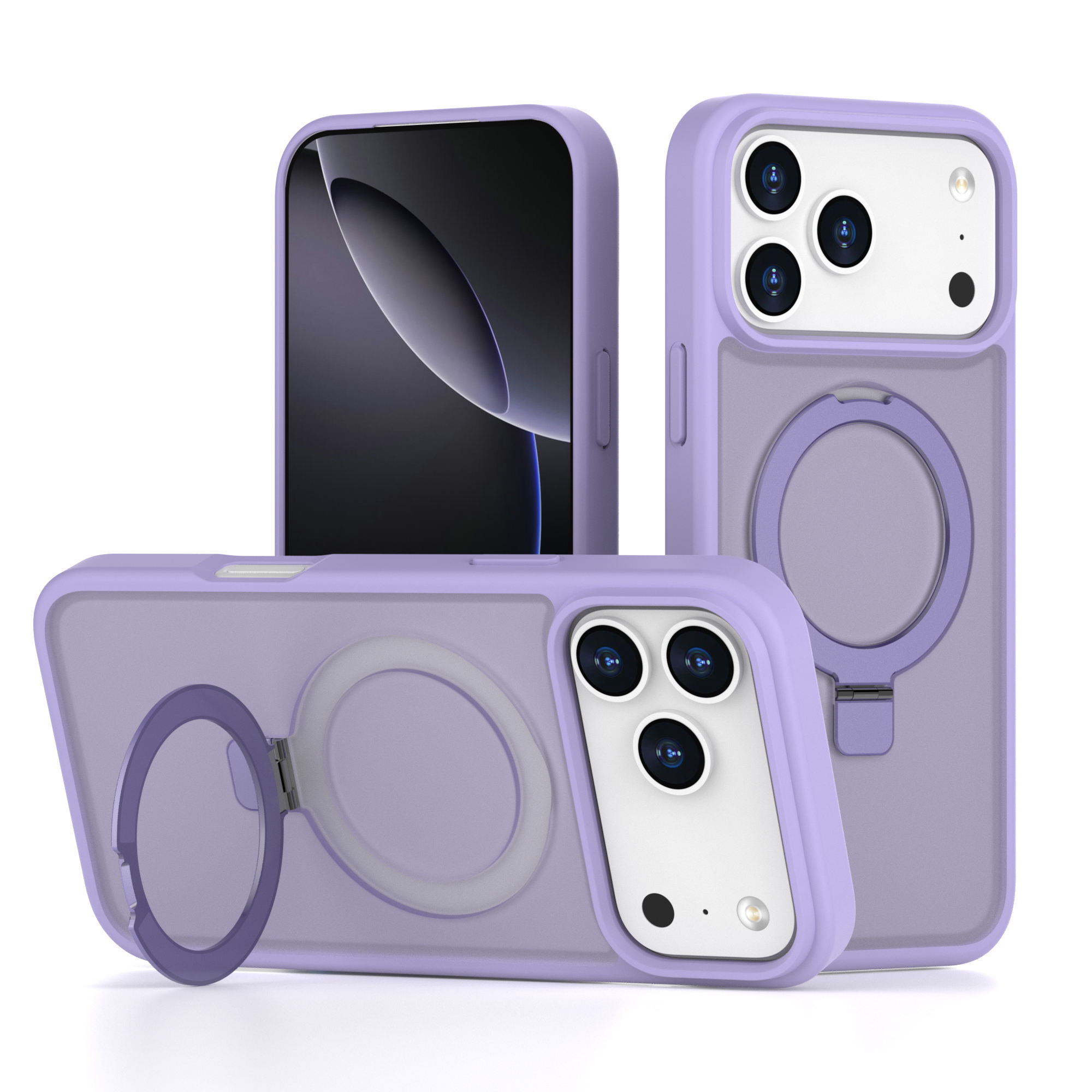 Custom Strong Magnetic Frosted Translucent Matte Phone Case with Invisible Ring Stand for iPhone 17 16 Pro Max Shockproof Covers