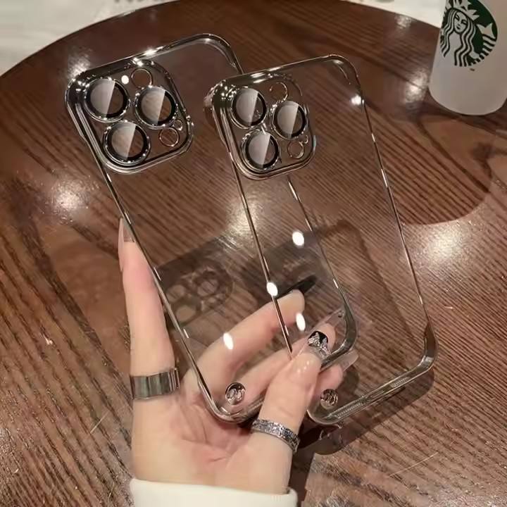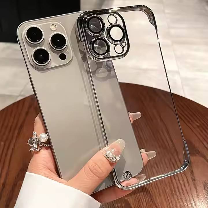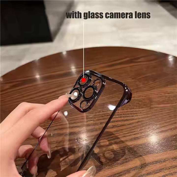 Luxury Plating Electroplated TPU Soft Frameless Ultra Thin PC Transparent Phone Case for Iphone 16 15 14 Pro Max With Lens Film