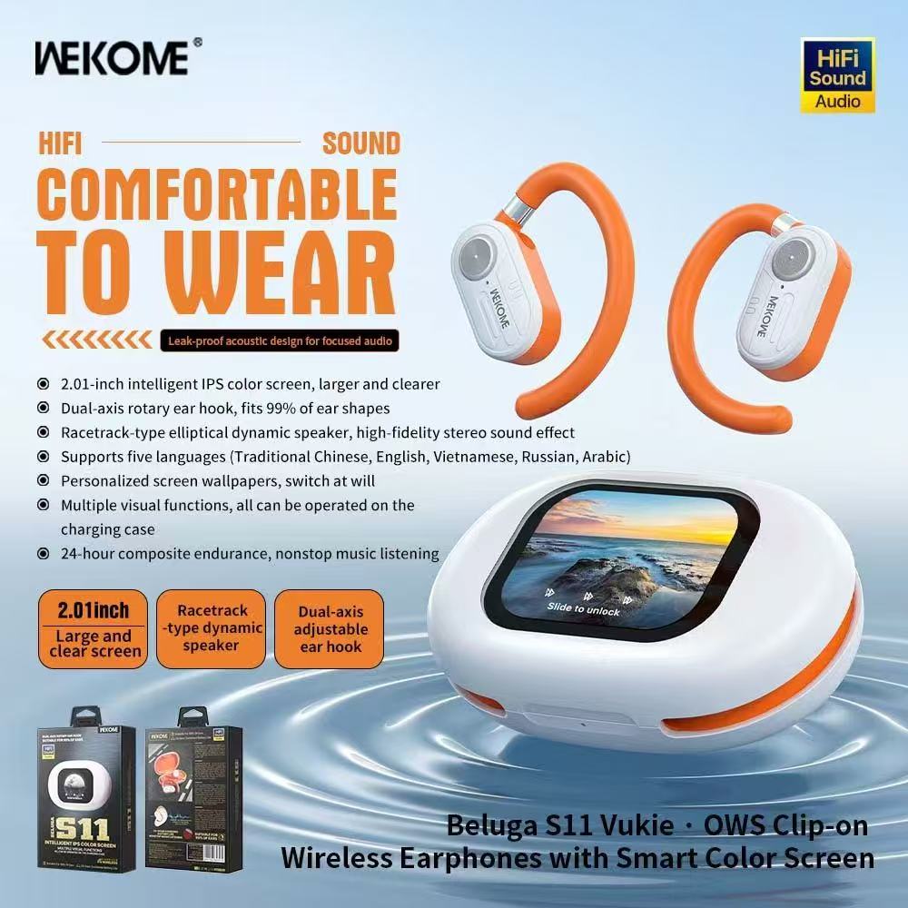 wekome Beluga S11 Vukie OWS Clip-on Wireless Earphones with Smart Color Screen