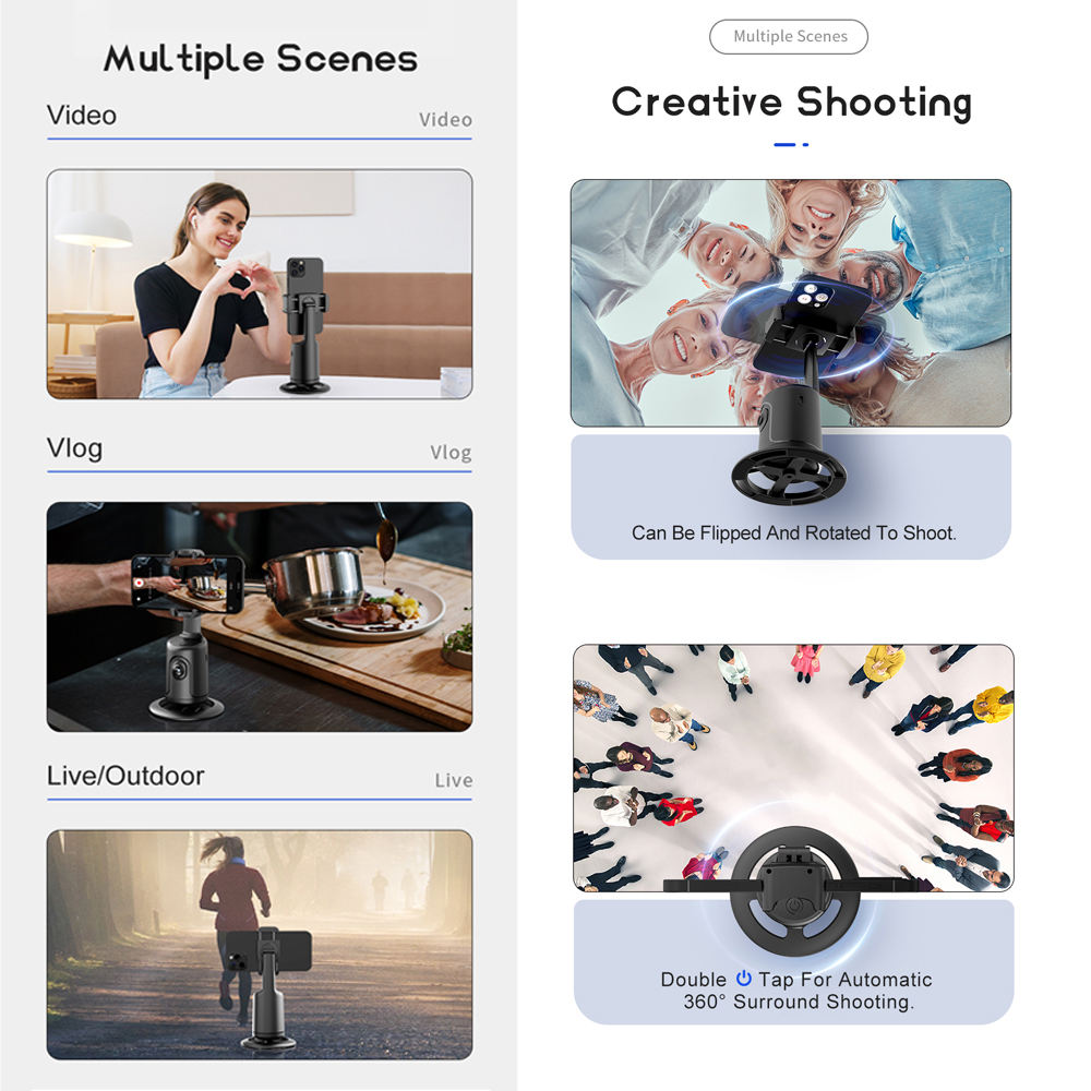 TOKQI P01 Auto-Gimbal Phone Holder 360 Rotation Smart Face Tracking Hand Gesture Recognition Stabilizer Selfie Stick Mount