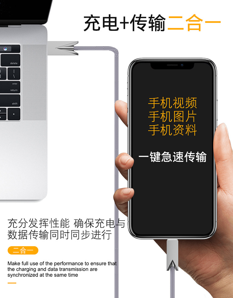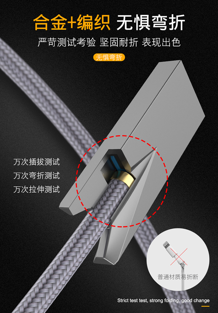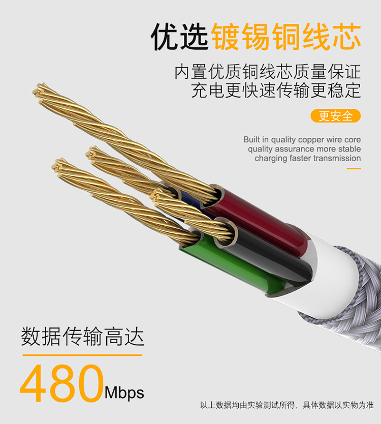 1. The wire is made of PVC flame-retardant material and anti breakage (in accordance with Tmall's requirements), which is wear-resistant, beautiful and does not knot. The outer diameter of the wire is OD3.5mm. The data cable undergoes 100% full testing and inspection. Meets Tmall's five testing standards, with 5K plug and unplug tests, over 1500 swing tests, 5kg pull tests, 24-hour salt spray testing, and PVC flame retardant testing. [Other specification requirements can be customized by contacting customer service]