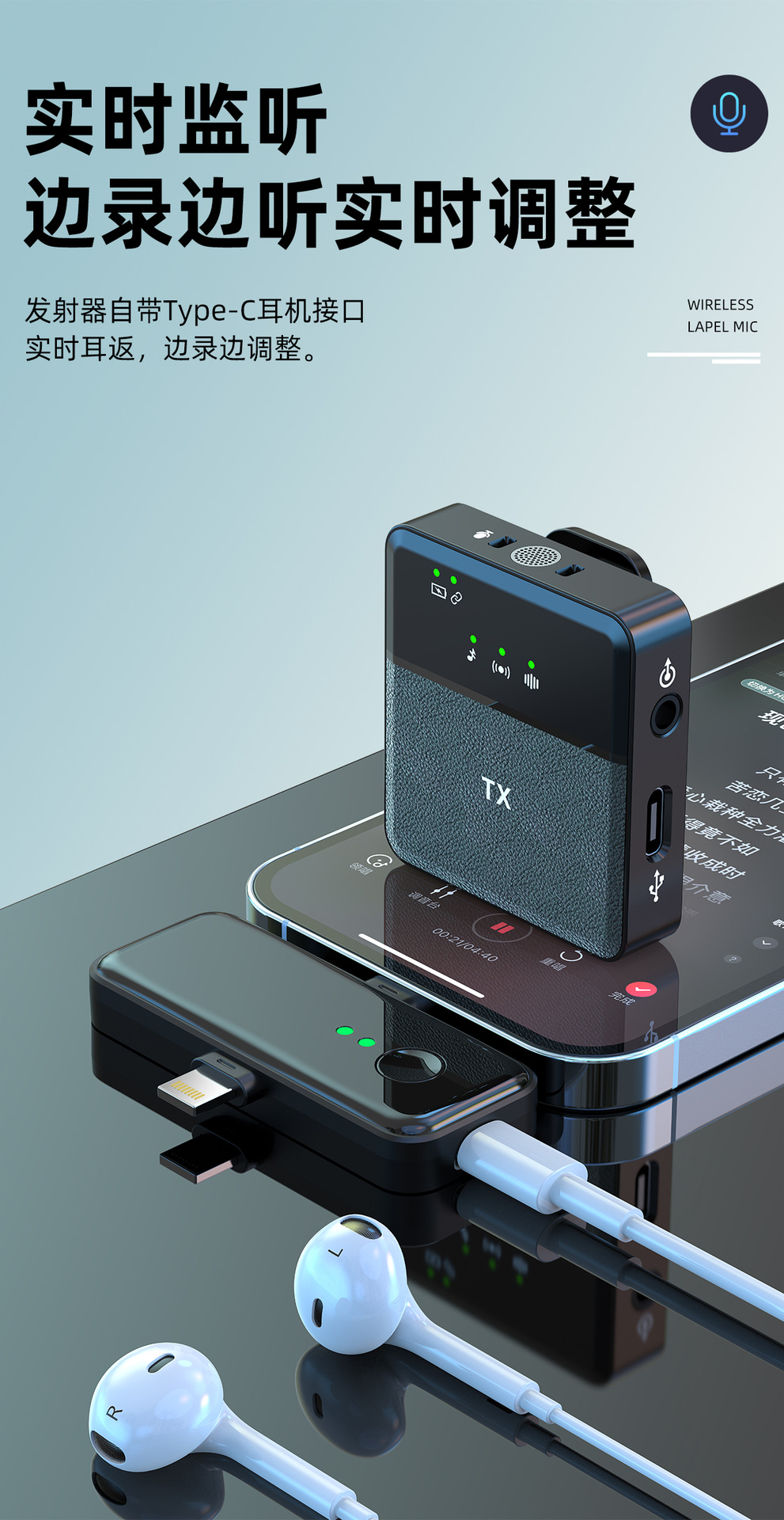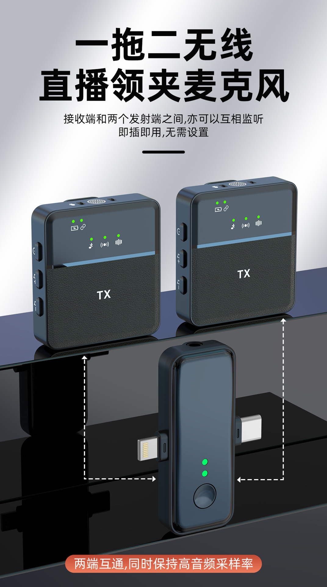 BAIWANGLI -SX31 Wireless Collar Microphone Live Streaming Equipment Anchor Reception Mobile Recording Outdoor Video Microphone