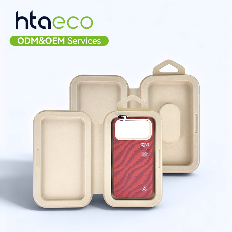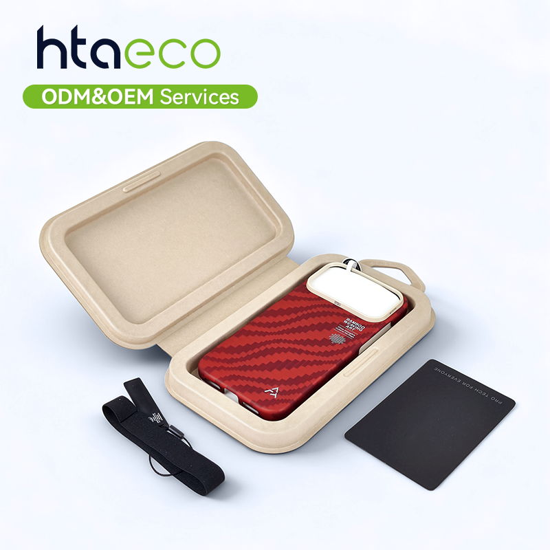 Hta 006 Custom Logo New Design Eco-friendly Materials Molded Fiber IPhone17 Case Packaging Box Molded Pulp Packaging with Slott