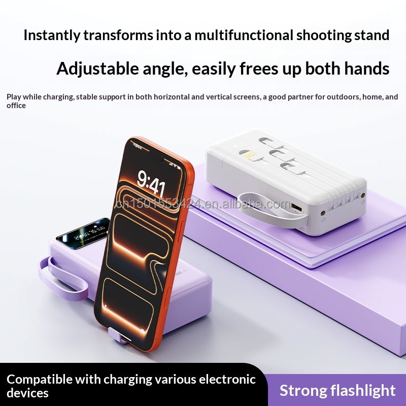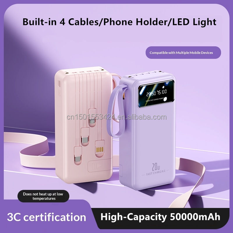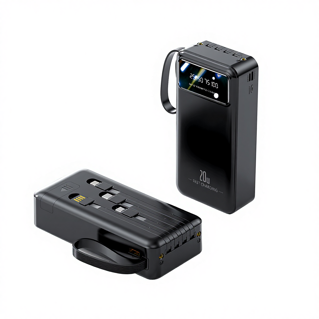 22.5W Fast Charging 30000mAh Power Bank with Digital Display Four USB Type-C Output PD Portable Charger with 2 Cables