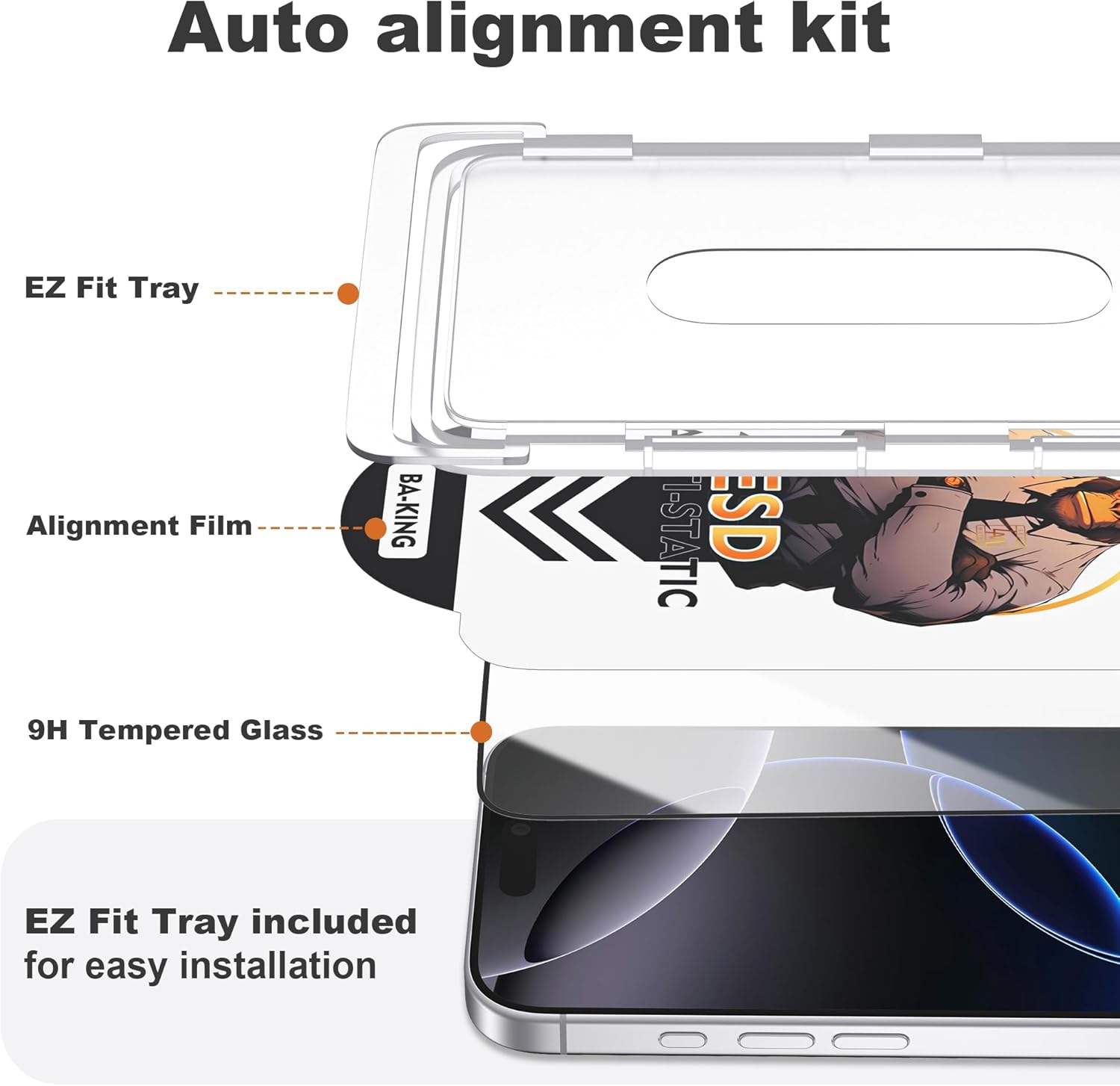 Full Cover Anti-static Screen Glass Protector For Iphone 17 Pro Max 16 15 14 Pro Installation Kit Easy Install Anti-peep Film -