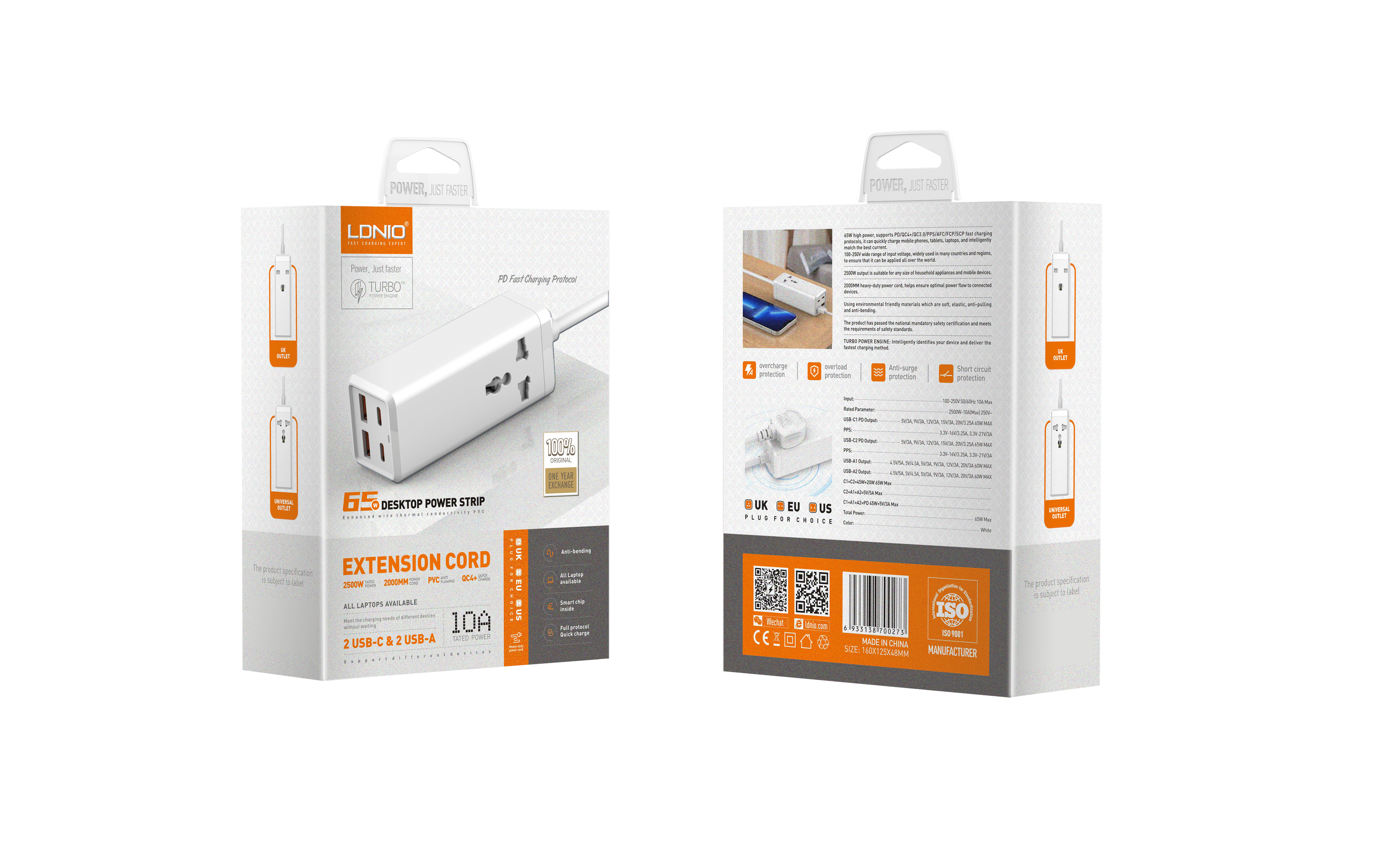 LDNIO--Power Strip--SC1418 "2500W Desktop Power Strip with 2 USB-C & 2 USB-A 65W High pwoer"