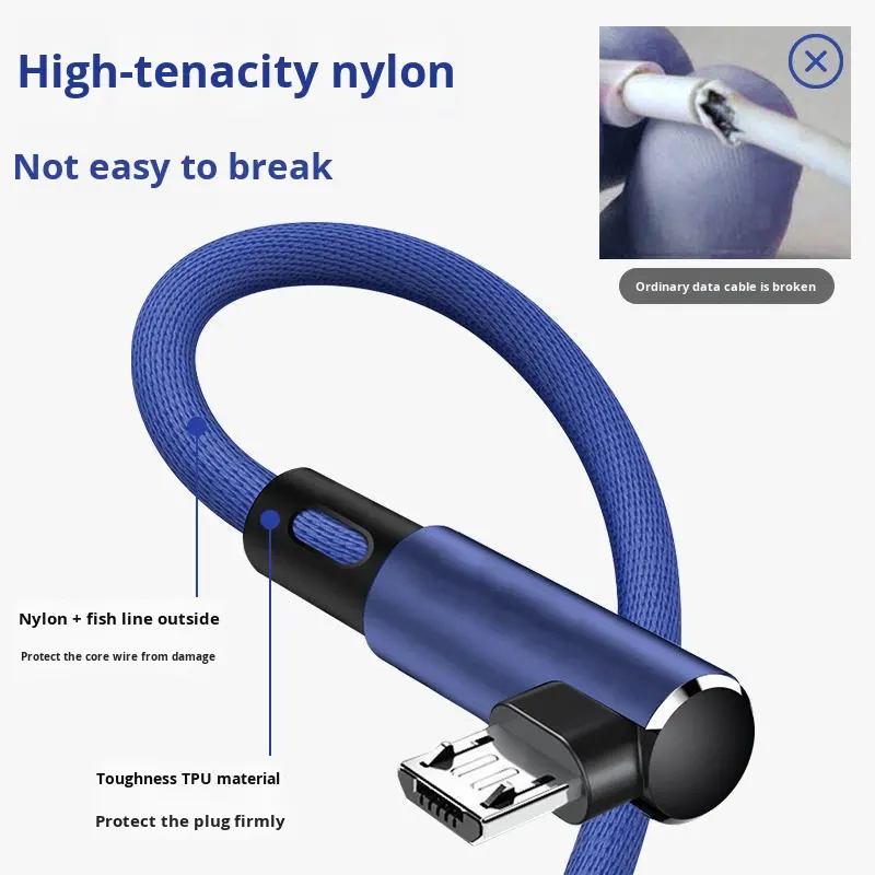 Guolu--Gl 1m 1.5m 2m Curved Fabric Nylon Braided Usb Charging Cable 3a Fast Charging Compatible Ios Micro Usb Type C Phone Devic