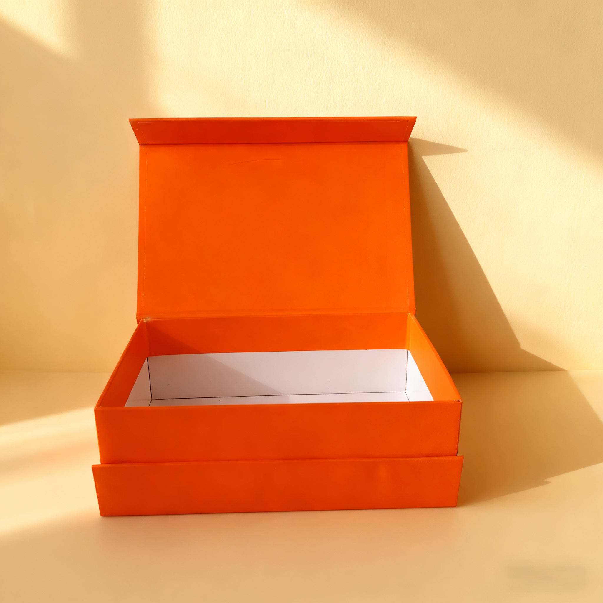 Gathe 008 Customizable Logo Magnetic Gift Flip Top Box with Tray Orange Art Paperboard Gift Box for Jewelry Cosmetics Retail Gif