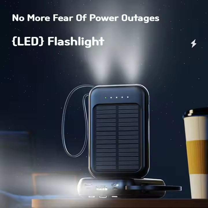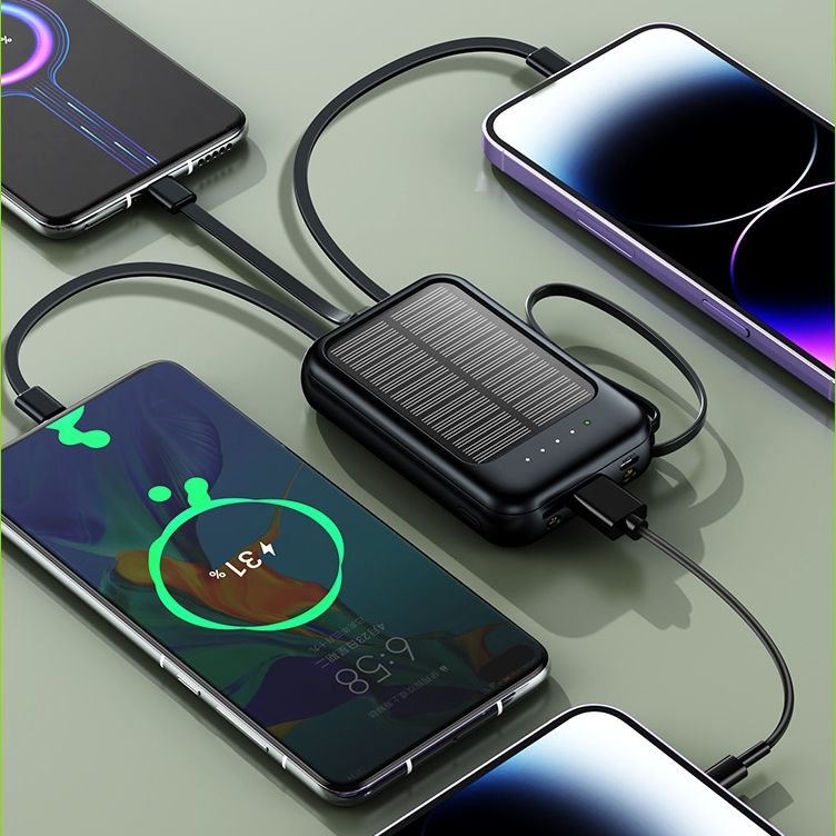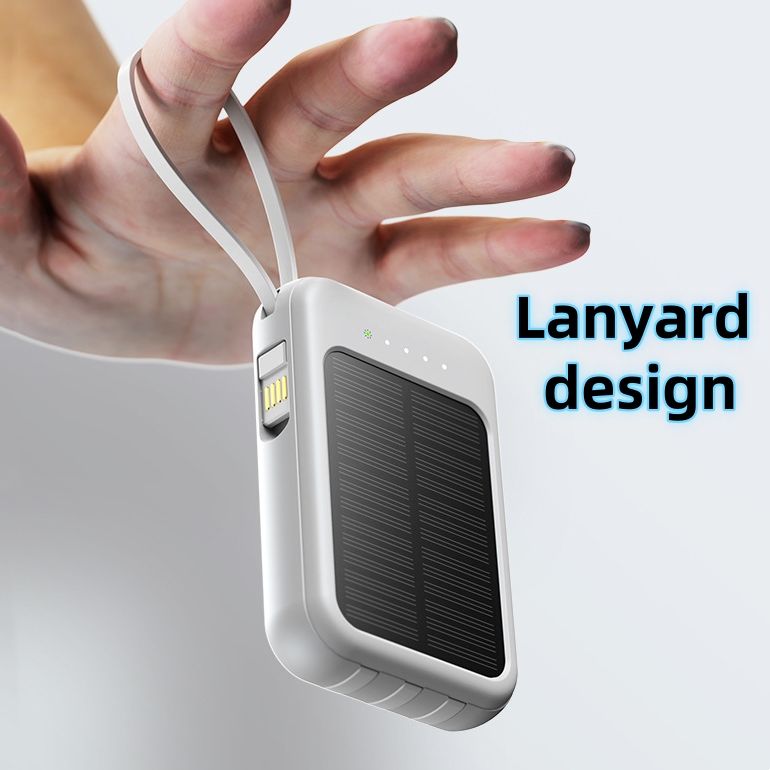 New Portable Charger 5000mah Solar Lanyard Built in 4 Cables Power Bank Plastic Powerbank 10000 Mah for Outdoor