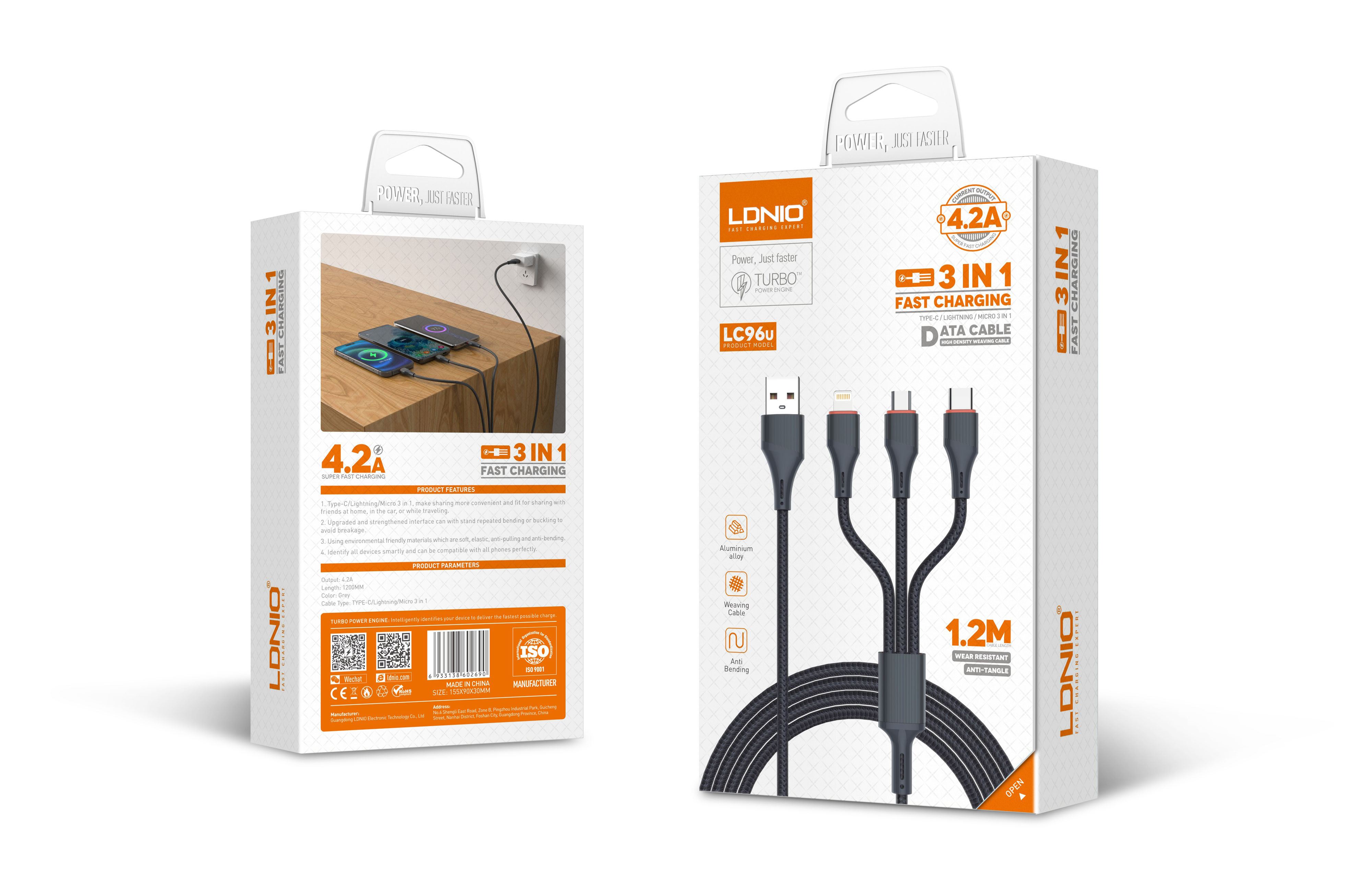 LC96 u 1.2M 5V/4.2A 3In1 Cable