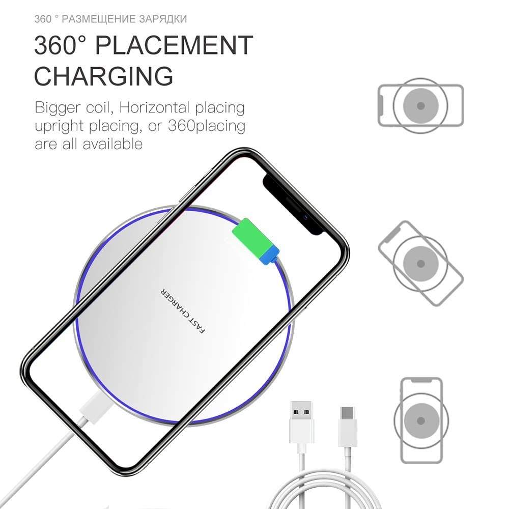 KSENTRY Portable 20W Aluminum Wireless Charger Station with LED Light Smart Phone Fast Charging Pad Input 5V/2A 9V/2A Output 5W