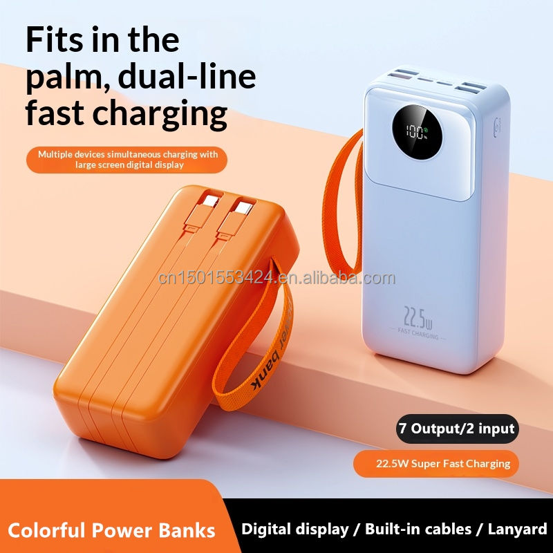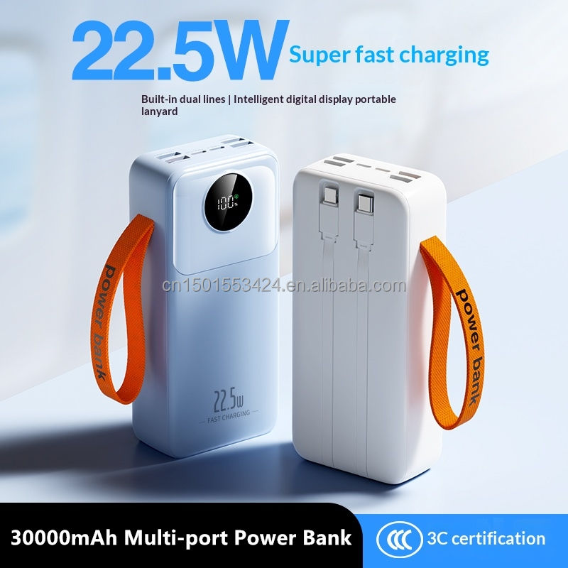 22.5W Fast Charging 30000mAh Power Bank with Digital Display Four USB Type-C Output PD Portable Charger with 2 Cables