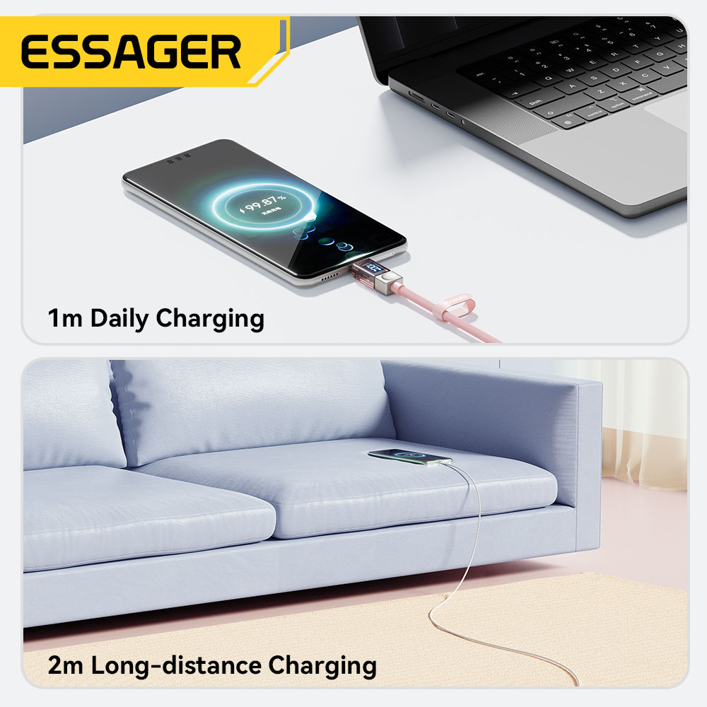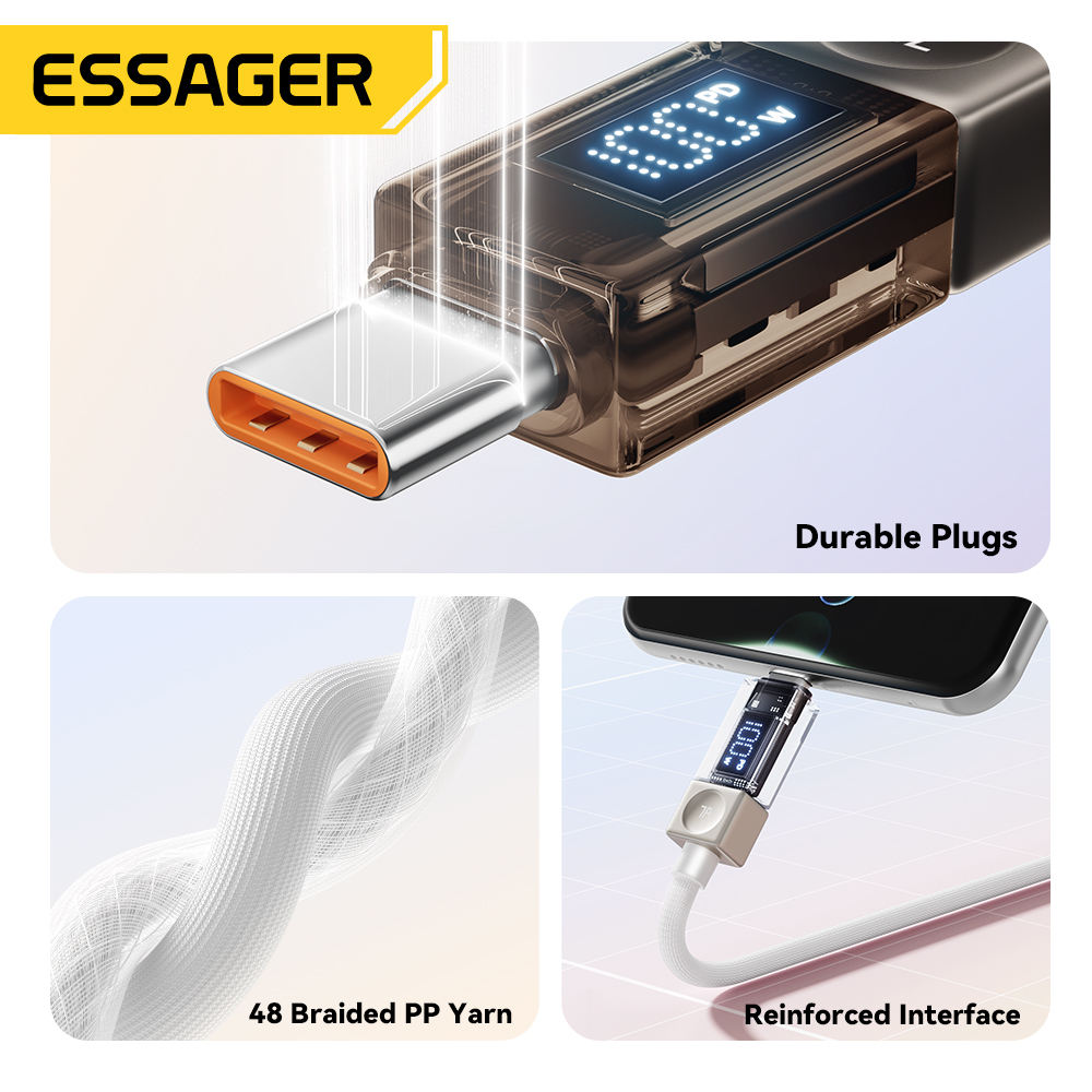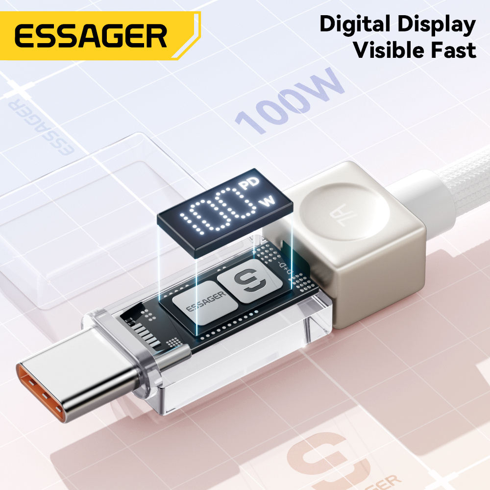 Essager Es-x76 Led Digital 1m 2m 7a Pd 100w Cell Phone Usb Charger Cable Full Charger Usb A To Usb C Cables With Box - Buy Usb C