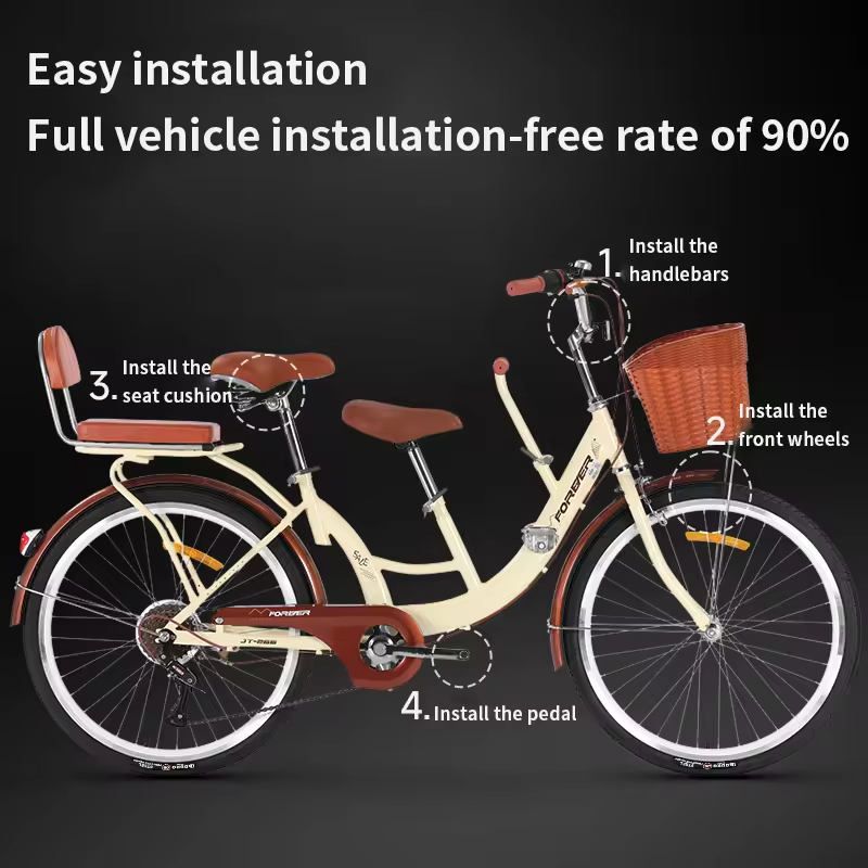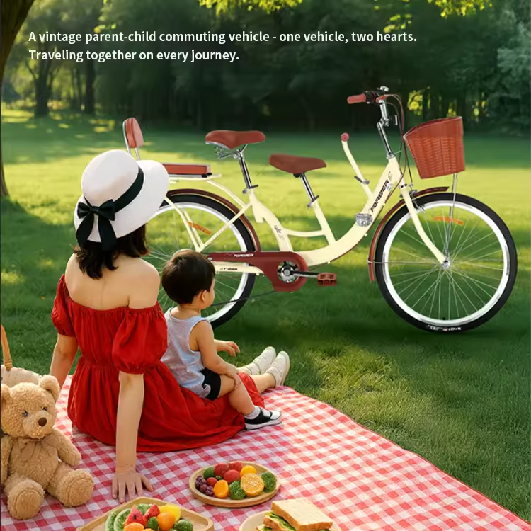 2025 New Single_6 Speed Parent-Child Commuter Bike Mother's Bicycle with Kids' Pedal Tandem Bike for Families with Two Children