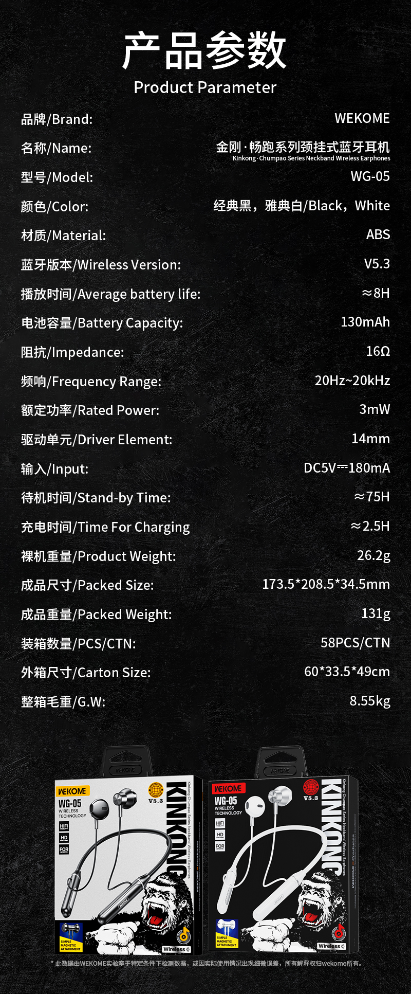 WG-05 KinKong.Chumpao Series Neckband Wireless Earphones wekome