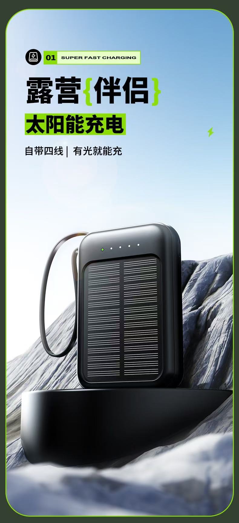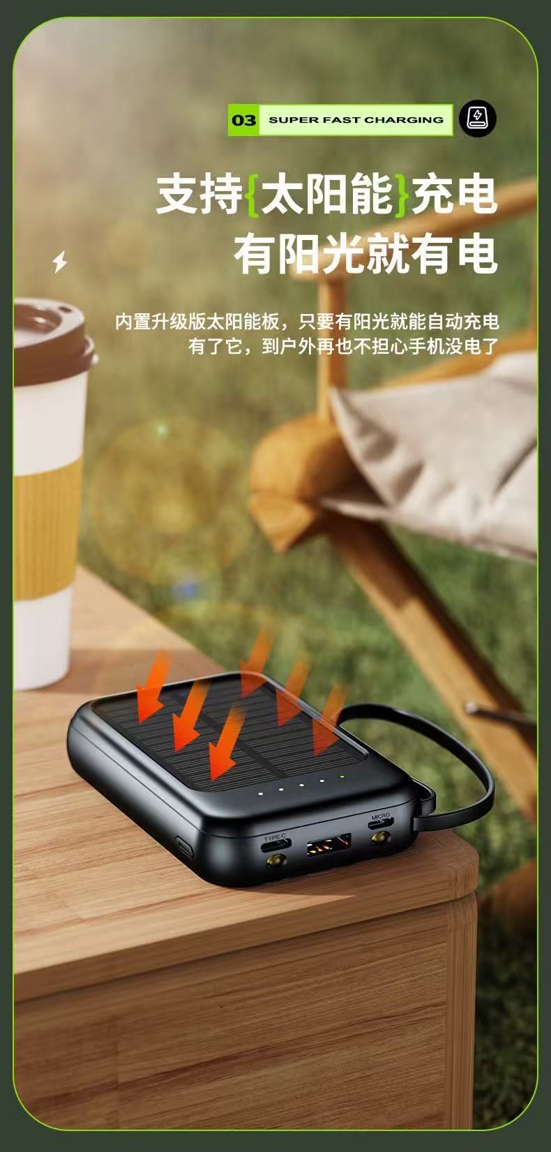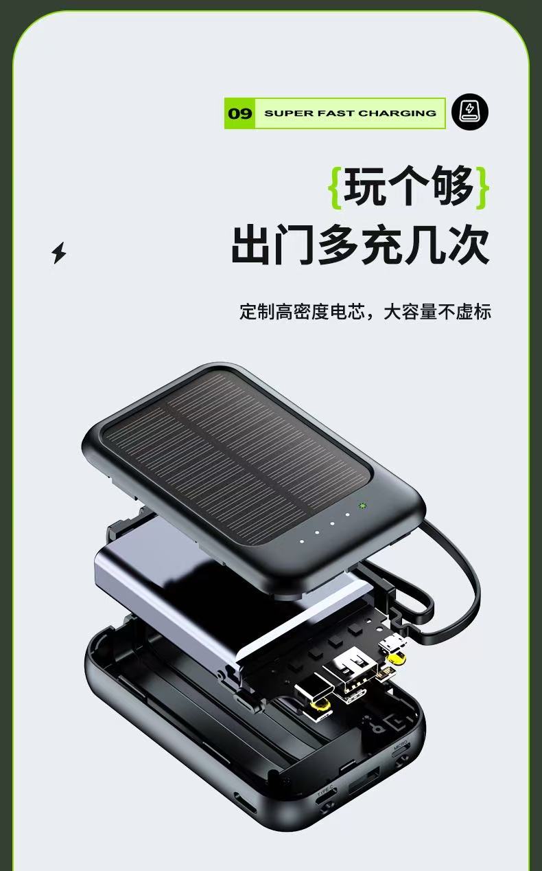 VIEREX--VP67S--Solar Power Bank--10000MAH--Fast charging--With 4 cables--LED light