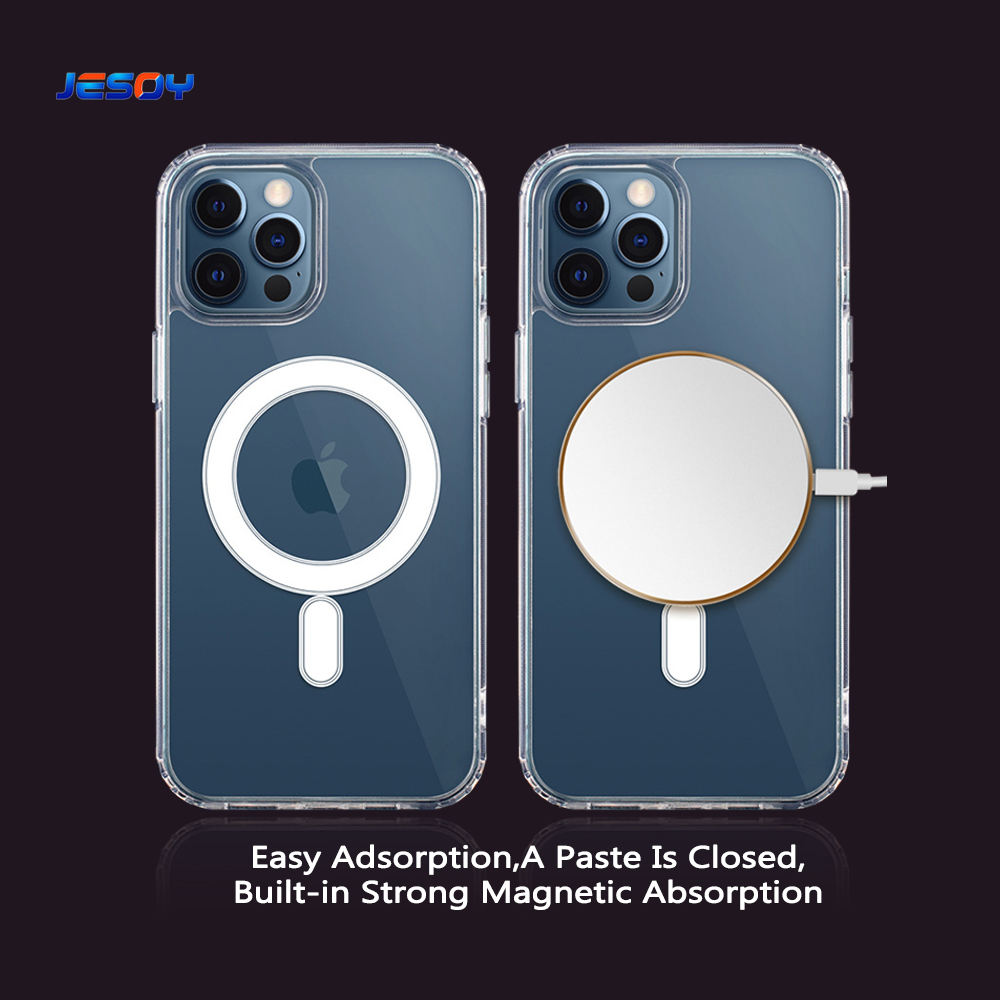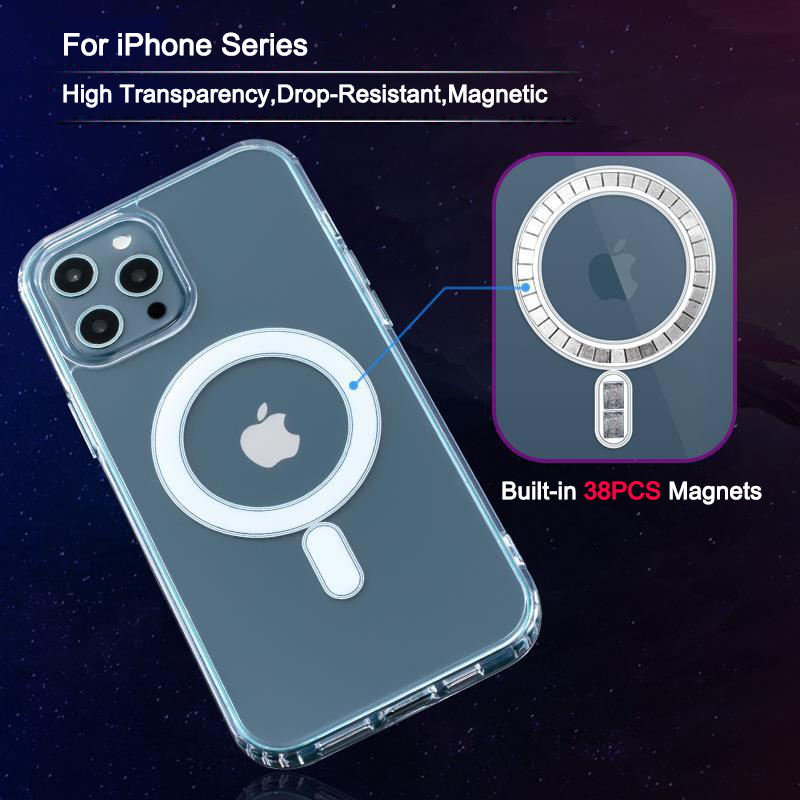 Original Smart Transparent TPU Magnetic Cover Mag for iPhone 15 14 13 12 S22 Ultra Safe Shockproof Magnet Phone Case