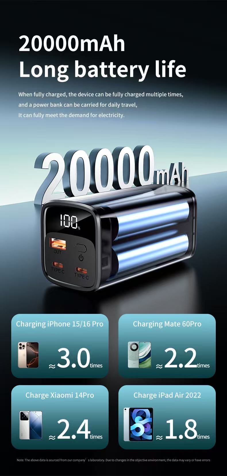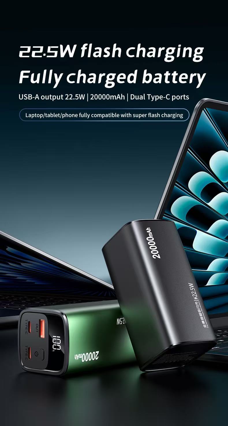 VIEREX--Power Bank-VP22--20000MAH HD Display Real-time LED battery level