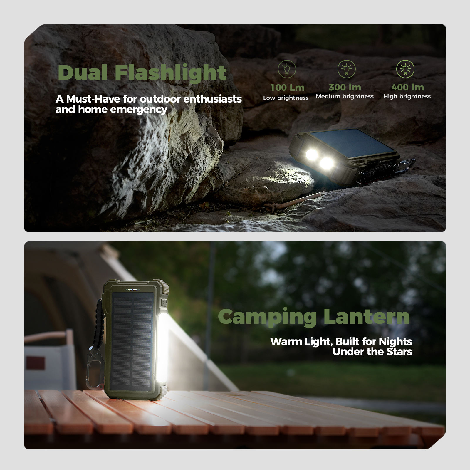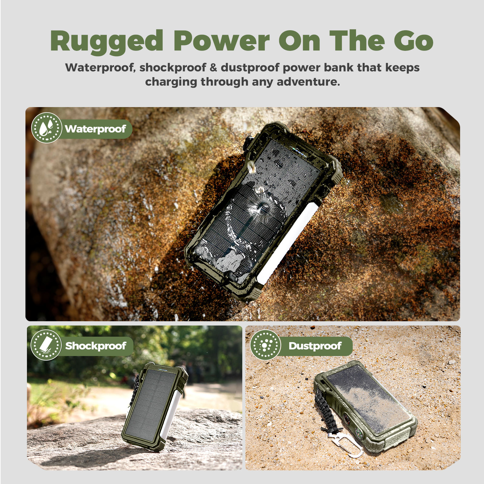 2025 20000mAh Portable Solar Power Bank Big Power Splash Proof for Outdoor Camping PD Fast Charger 4 Cables Compass Included