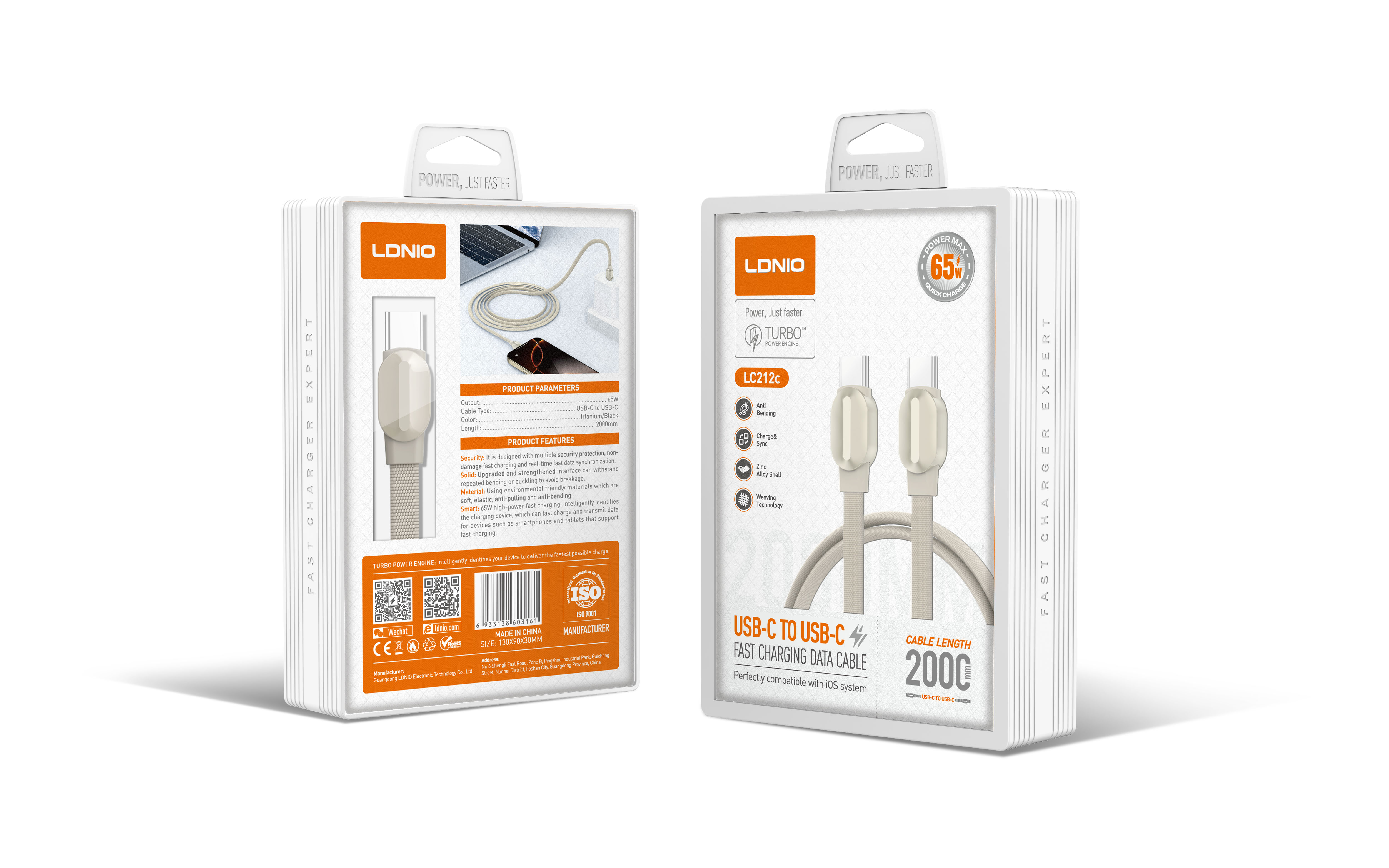 LC212c PD65W Type-C to Type-C Cable Support Laptop, ipads, phones fast charging