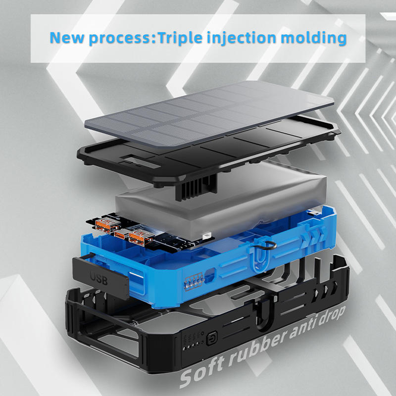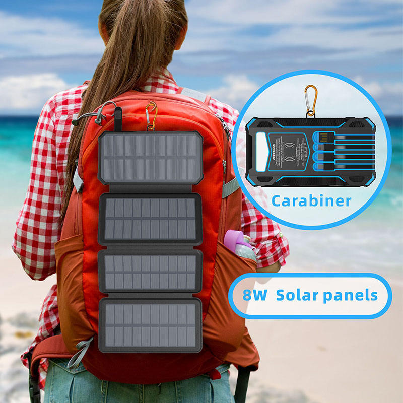 Outdoor 20000mAh Portable Battery Bank Build in Cables Power Banks with Folding 4 Solar Panels Emergency Backup