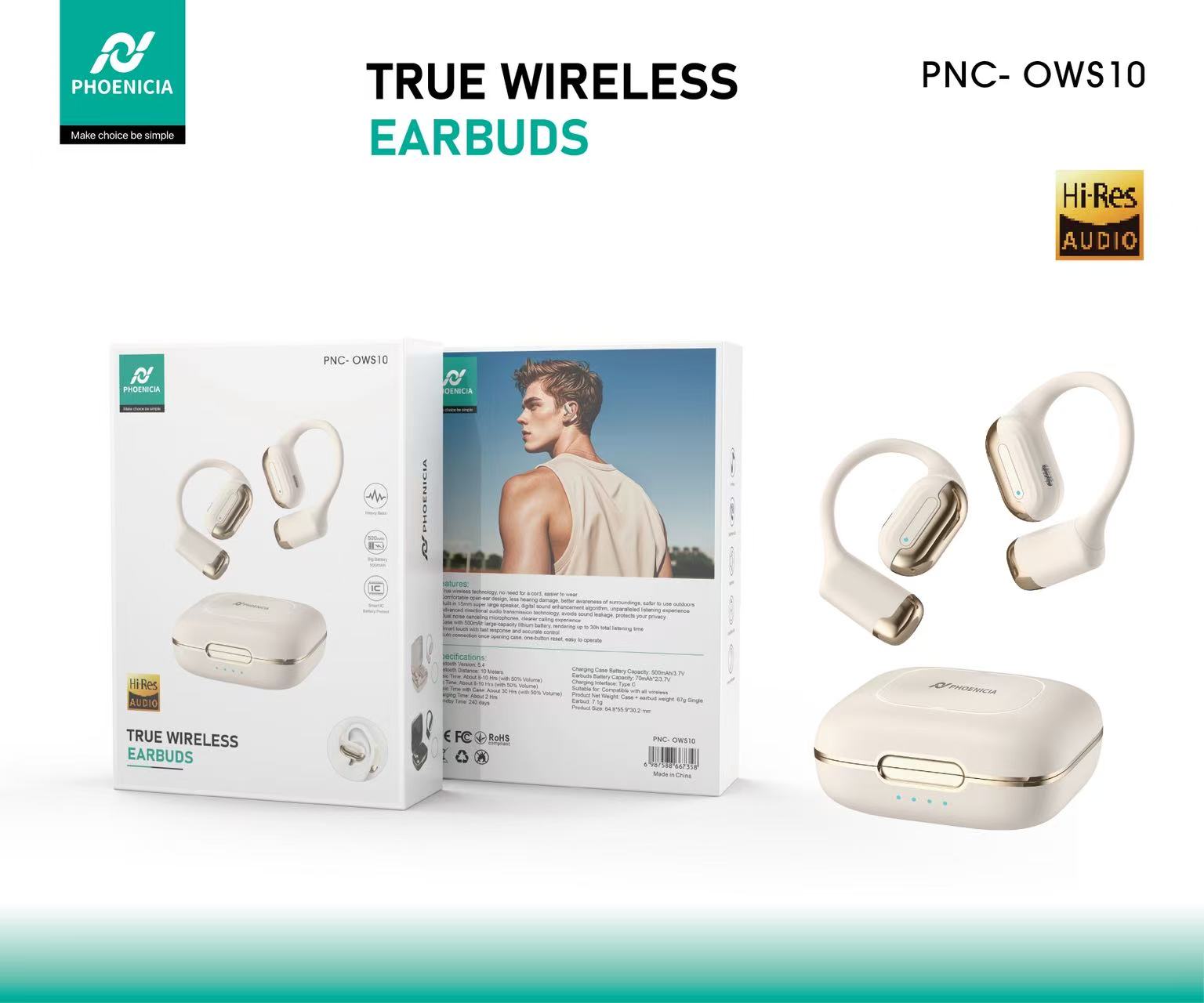PHOENICIA TWS earbuds battery 500 mAh ENC PNC-ows10 wireless earphone bluetooth earphone