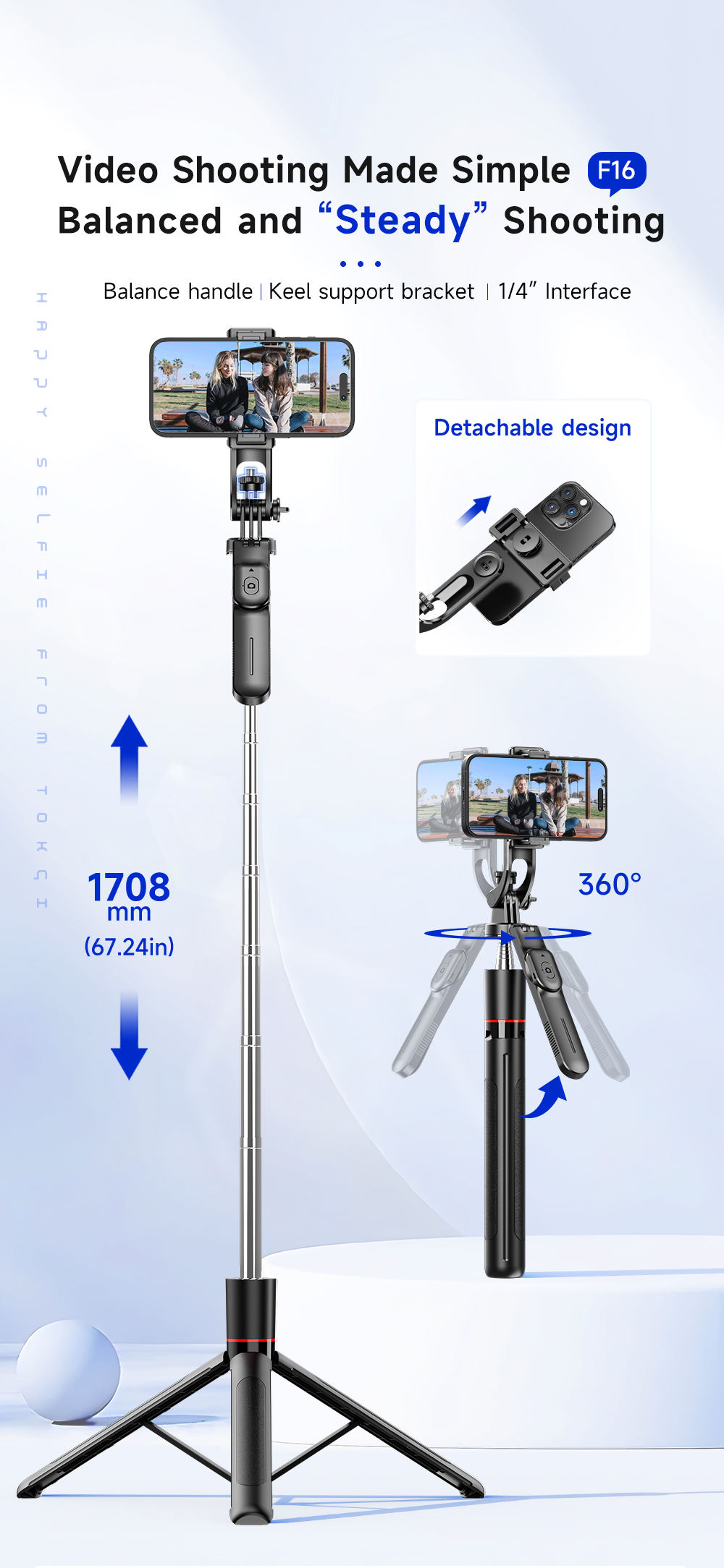 TOKQI F16 Stable Tripod Balanced and Stable Shooting Tripod Selfie Stick