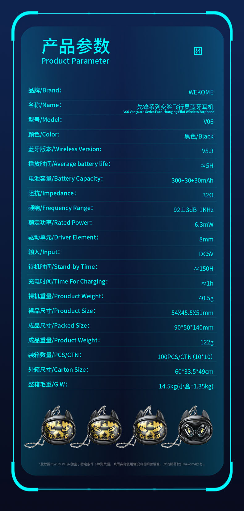 V06 Vanguard Series Face-changing Pilot Wireless Earphone wekome