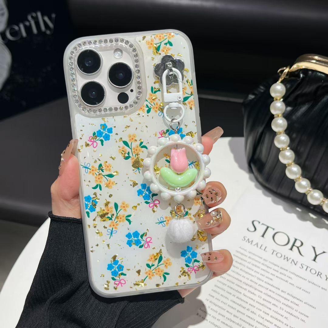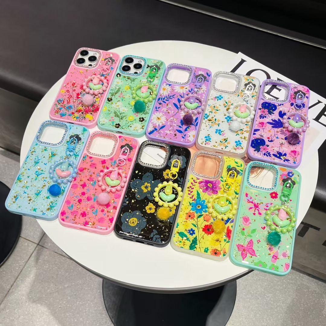 Wholesale Shockproof 360 Flower Phone Cases for iPhone 16 15 Pro 14 Plus 13 12 11 Glitter Floral Cover with Bracelet