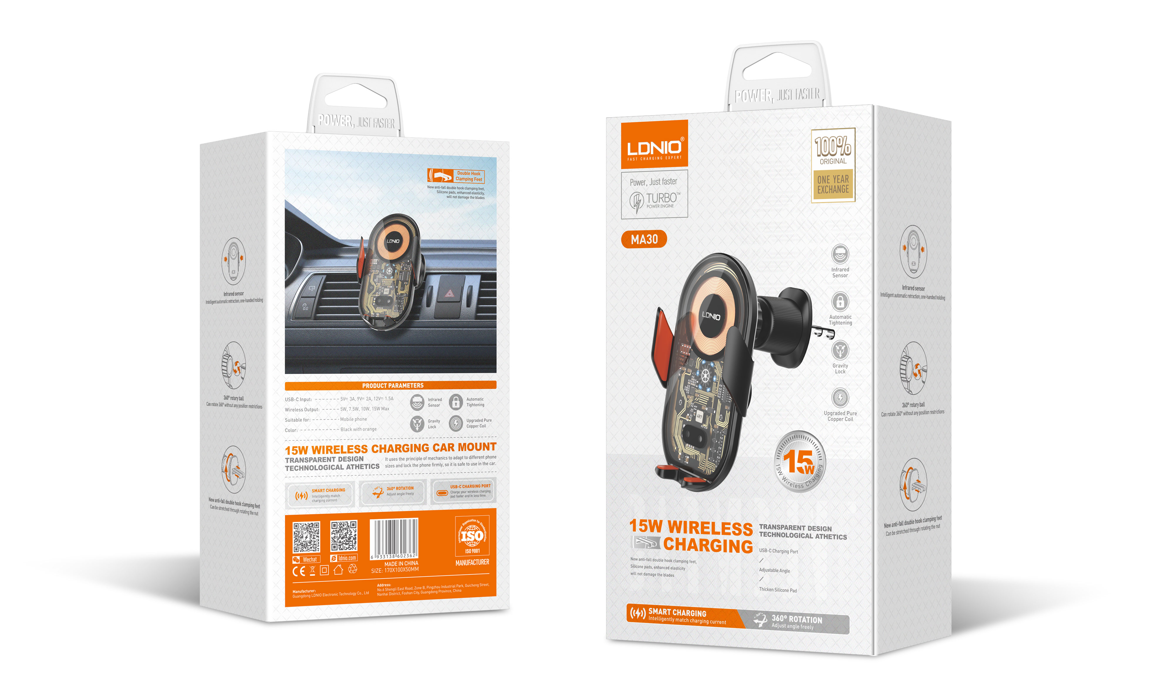 LDNIO--Car Holder--MA30 Infrared Sensor +15W Wireless Charging Car Mount
