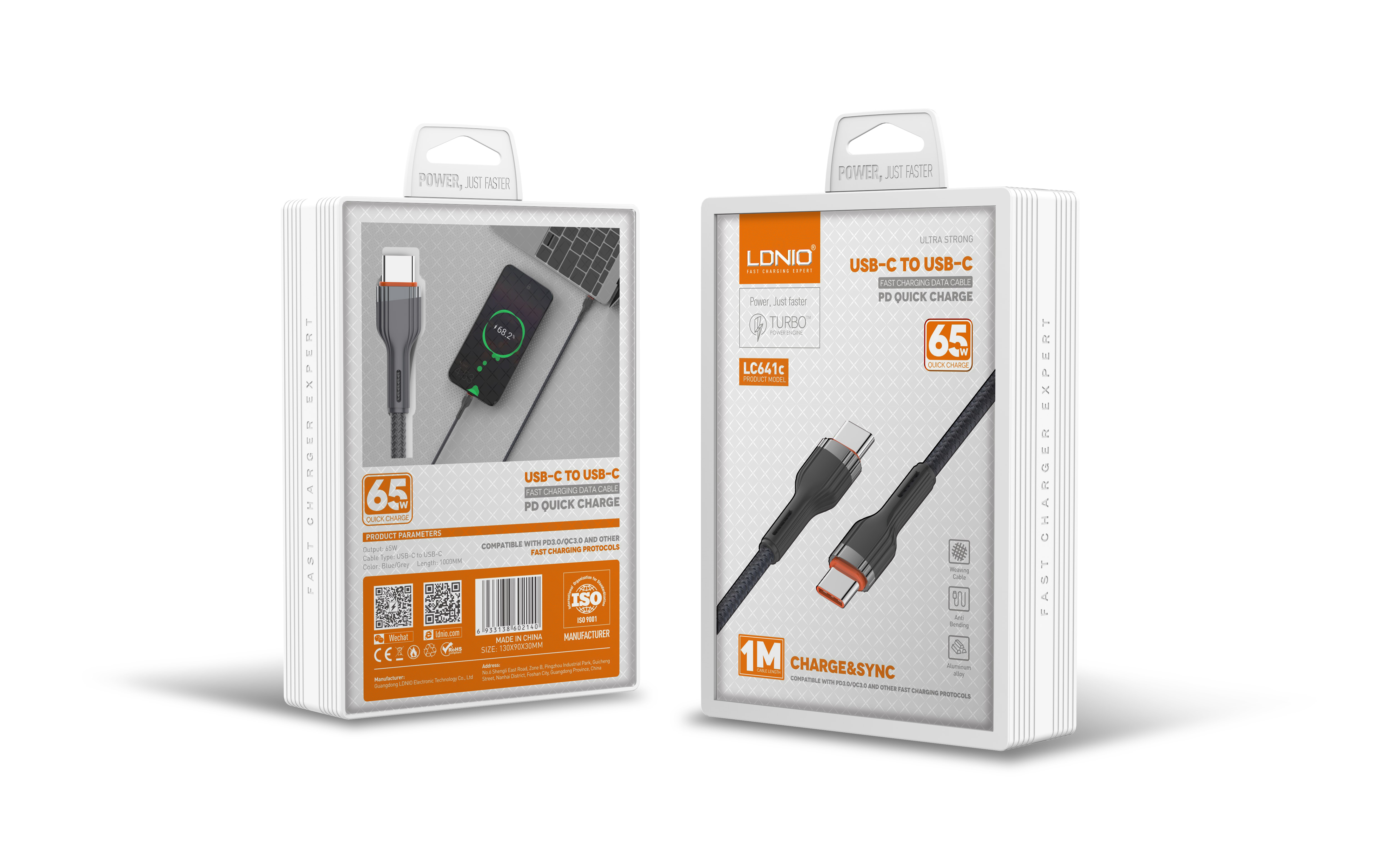 LC641c "PD65W Type-C to Type-C Cable Support PD and QC fast charging"