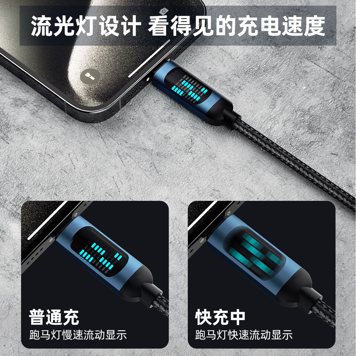 XINGANHUI 66W intelligent light array screen display fast charging data cable TypeC light display suitable for OPPO Huawei