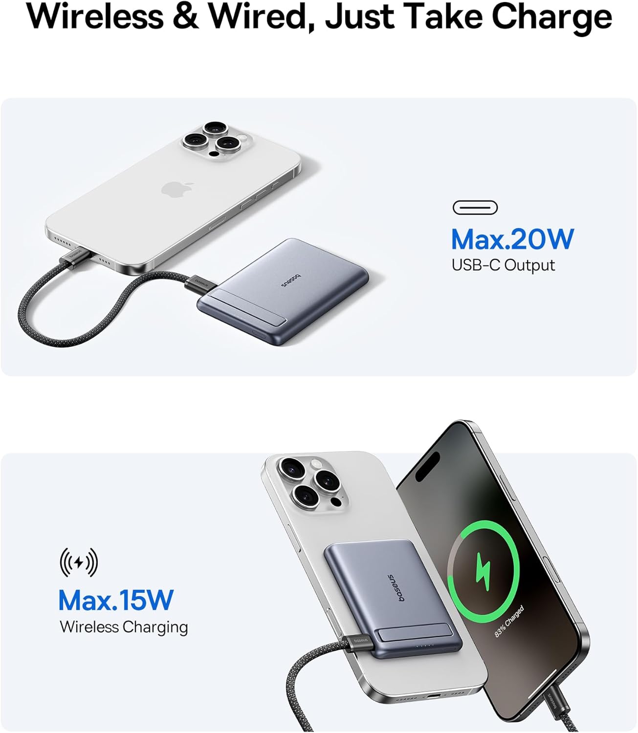 Baseus Picogo Power Bank, Smallest 5000mAh Magnetic Portable Charger with Stand