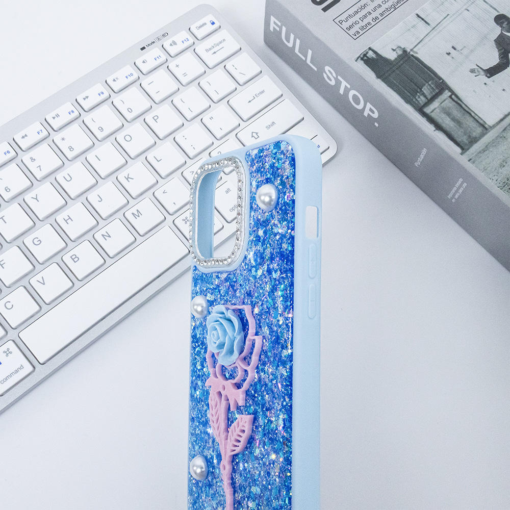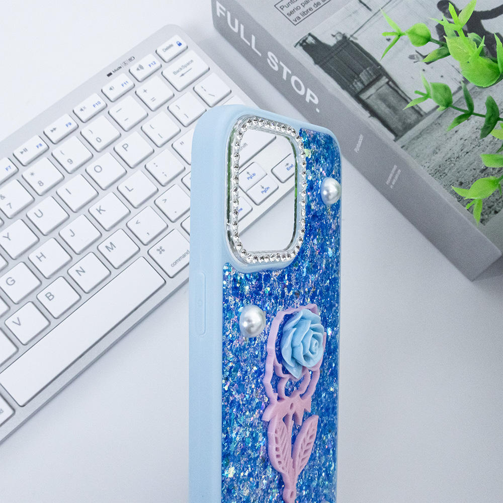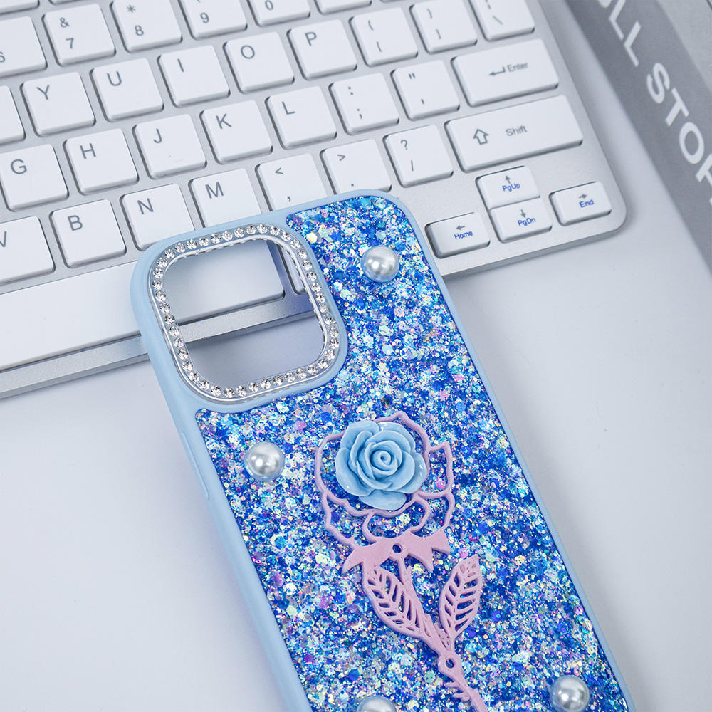 Groove TPU Glitter Mobile Phone Case Forros With Rose Accessory Back Cover for iphone 15 Pro Max Funda Protectora Para Celulares