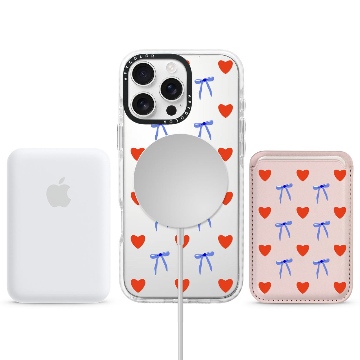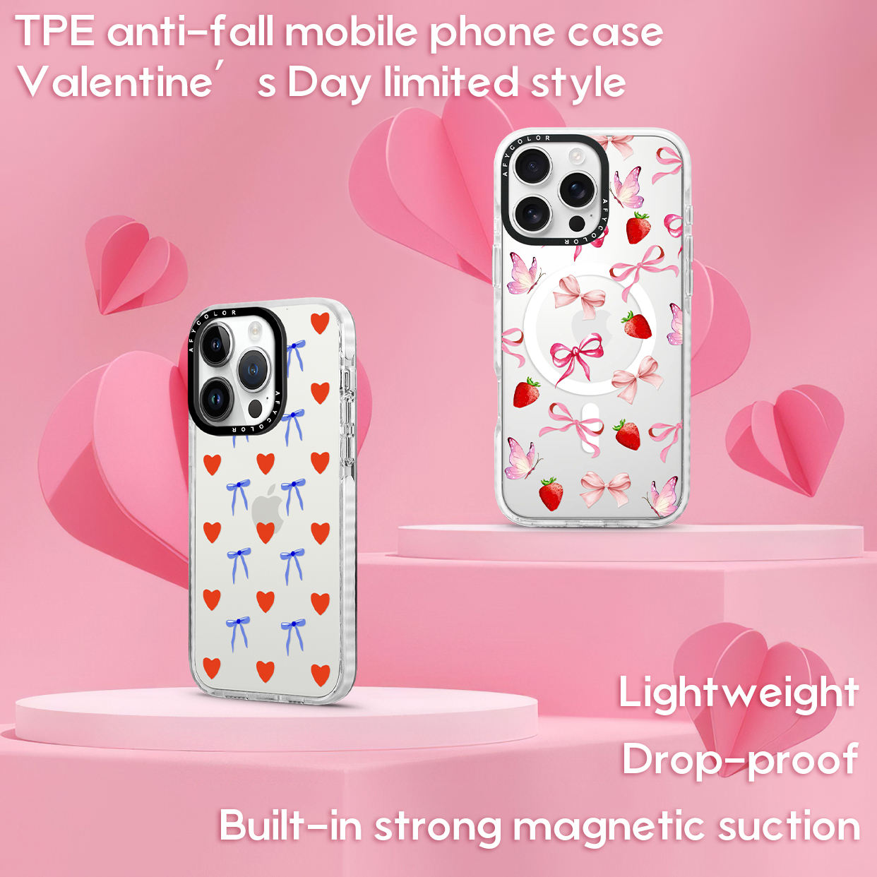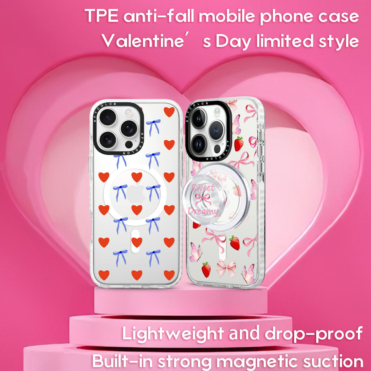 Valentine's Day Cute Heart Bumper Phone Case for iPhone Clear Shockproof Magnetic Cover with Removable Camera Protector