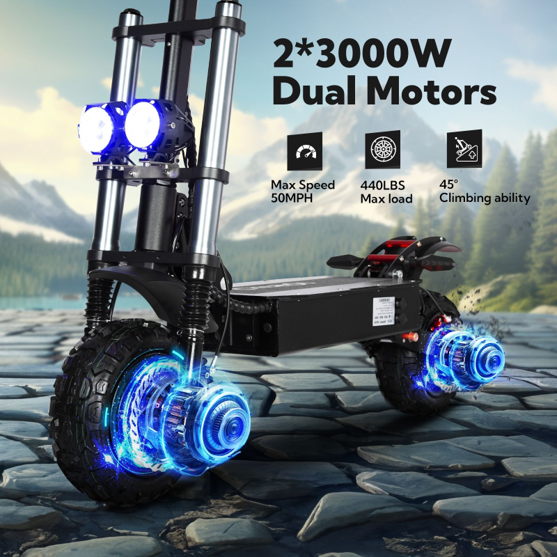E5B1 11-Inch High Power Off-Road Two-wheel Electric Scooter 90km_h 3000W 25Ah Lithium Battery Smart Type 120kg Load Waterproof