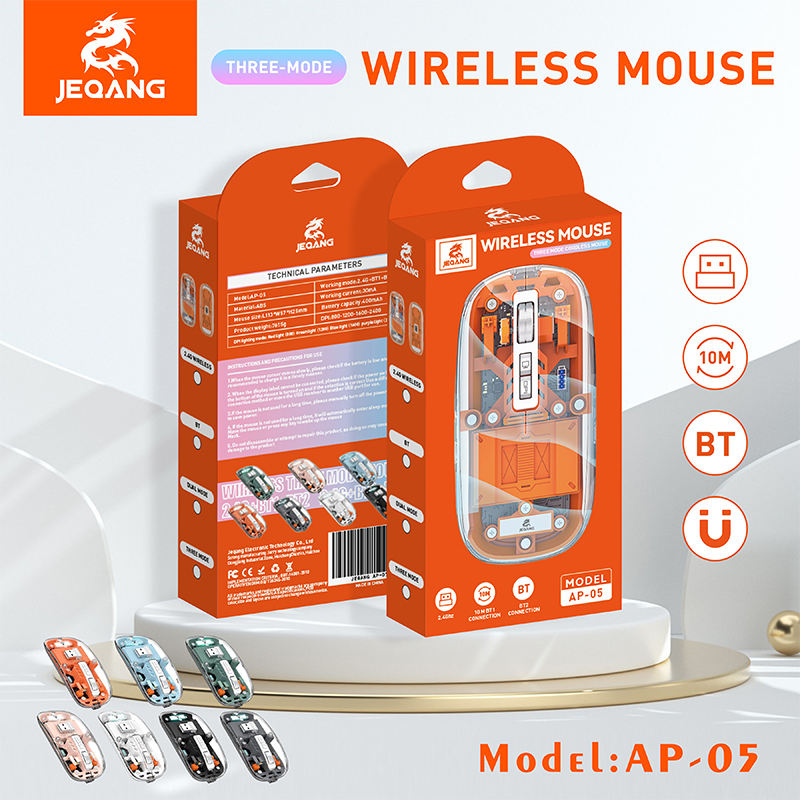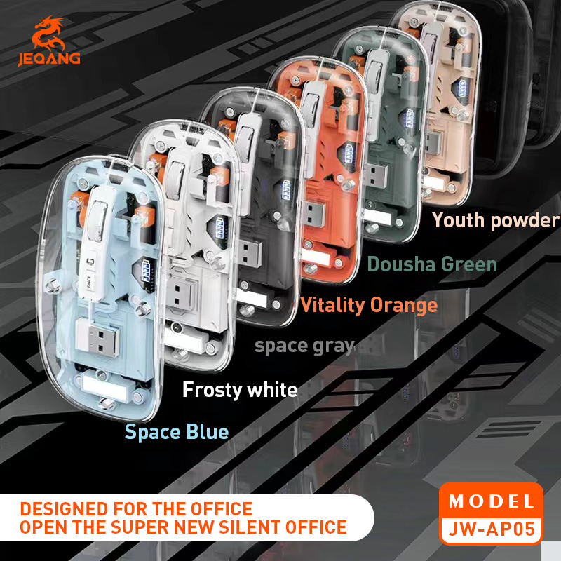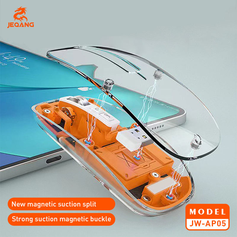 Jeqang RGB Transparent Design 2.4GHz Wireless Optical Mouse Backlit Charging Mouse Magnetic Upper Cover for Computer Laptops