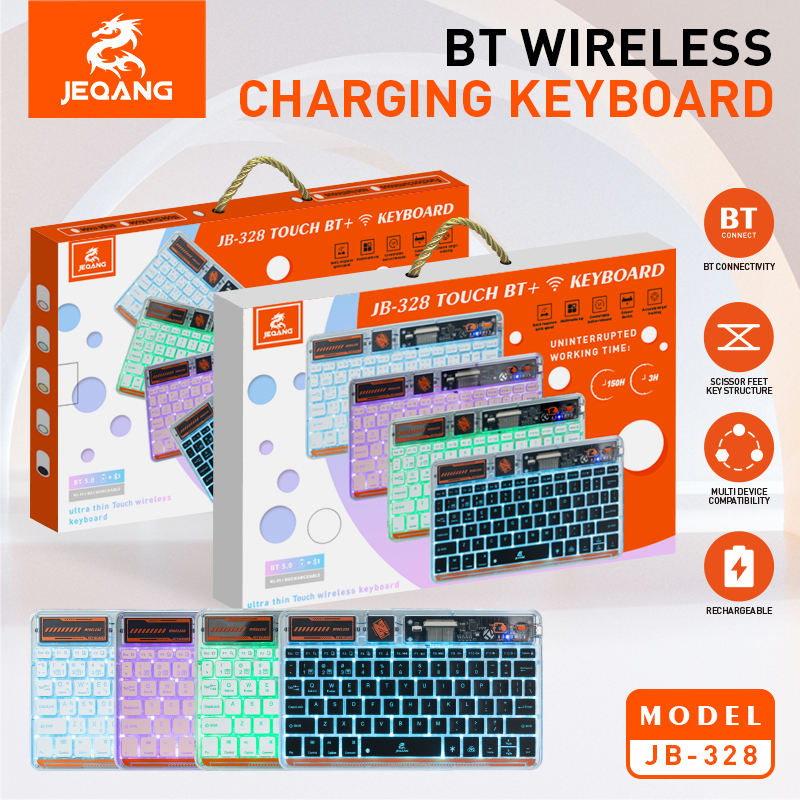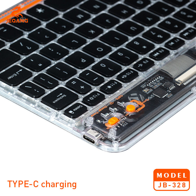 Jeqang JB-328 Transparent Wireless Mini Keyboard with Charging Backlight Plastic New IOS Supported Product for Tablets Laptops