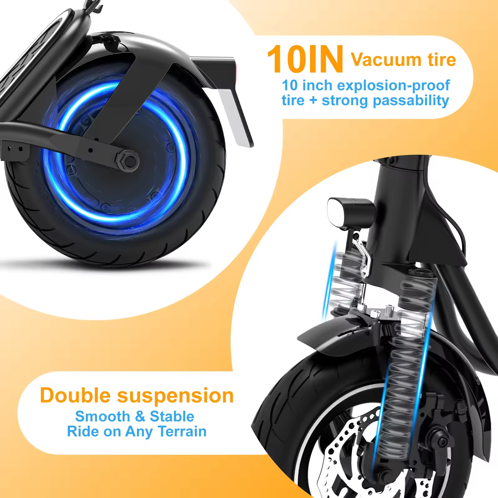 MX Warehouse Aluminum Alloy 800W Foldable Electric Scooter Front Suspension LED Light 36V 16AH Battery Big Wheels for Adults