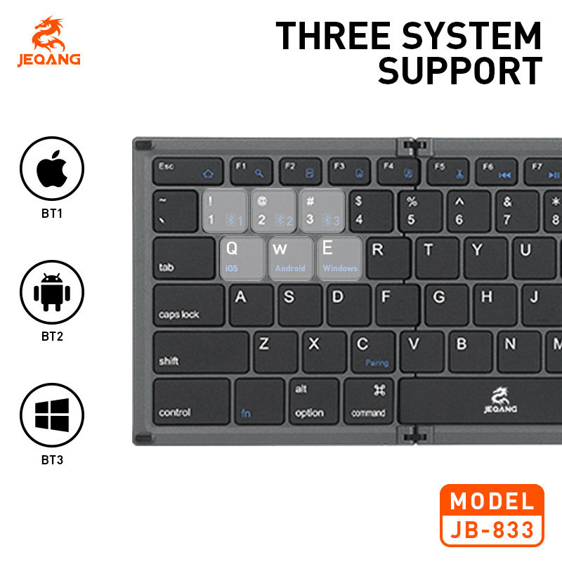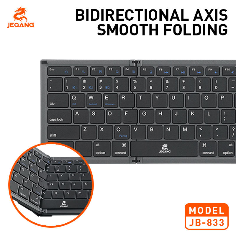 JEQANG JB-833 Wireless BT Keyboard 3-Fold Design with Touchpad Compatible for UK Folding for Easy Table Laptop Use