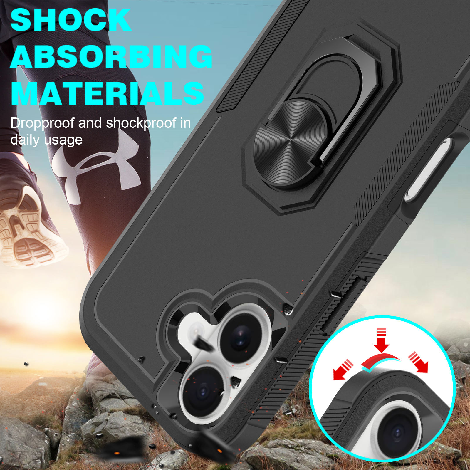 360 Degree Portable Kickstand CD Ring Magnetic Stand Shockproof Anti-fall Phone Case for 17 Air Pro Max-Durable PC