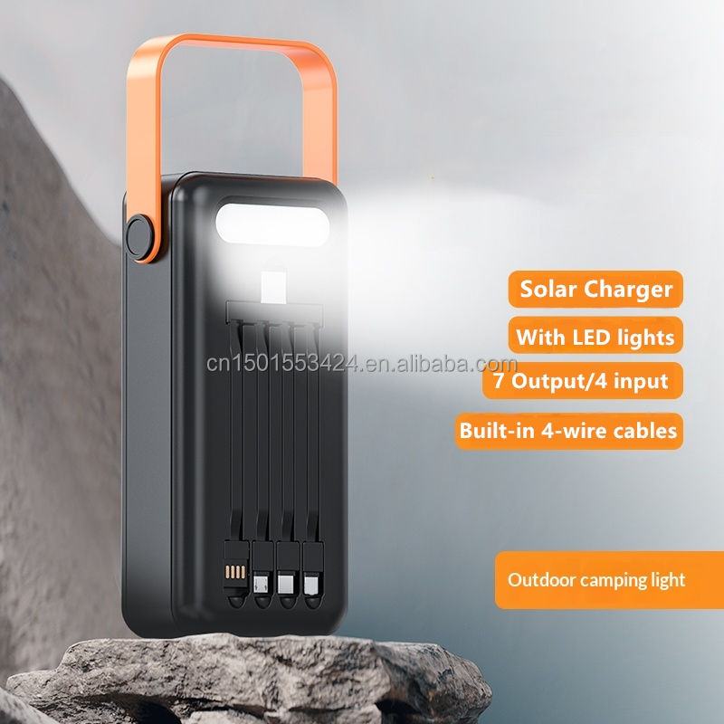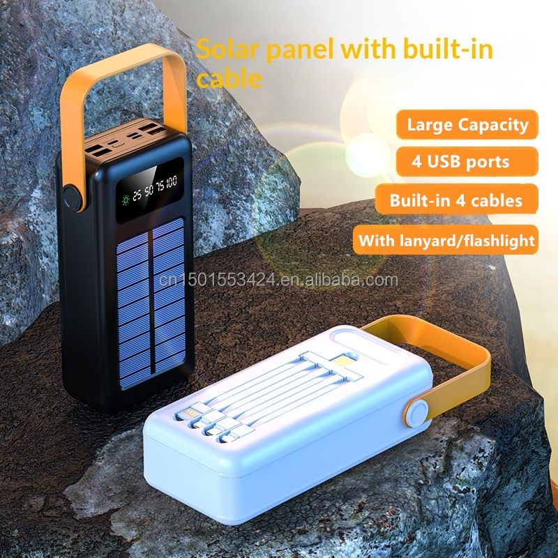 Durable Solar Power Bank 60000mah Built-in 4 Cables Large Capacity External Battery Charger With Led Light Hanging Rope