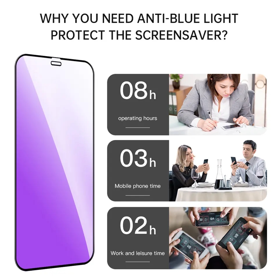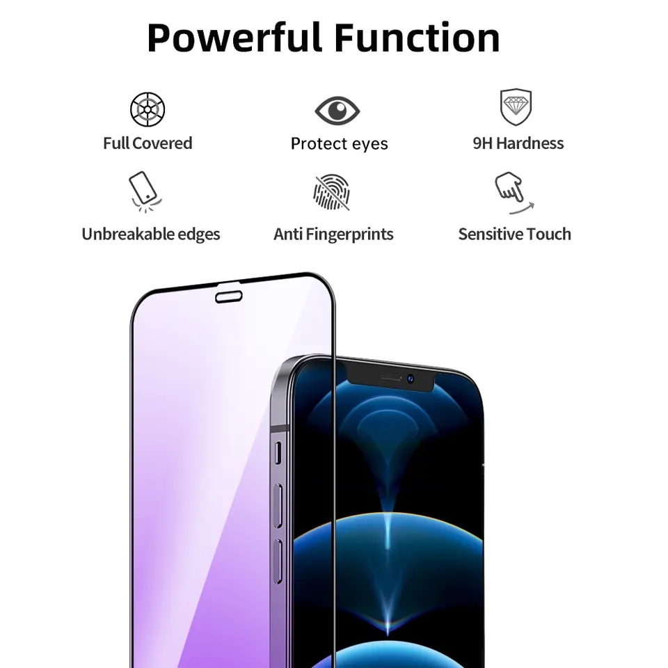 Atb 9h Anti Fingerprint Tempered Glass Anti-blue Light Purple Light Screen Protector For Iphone - Buy Purple Light Screen Protec