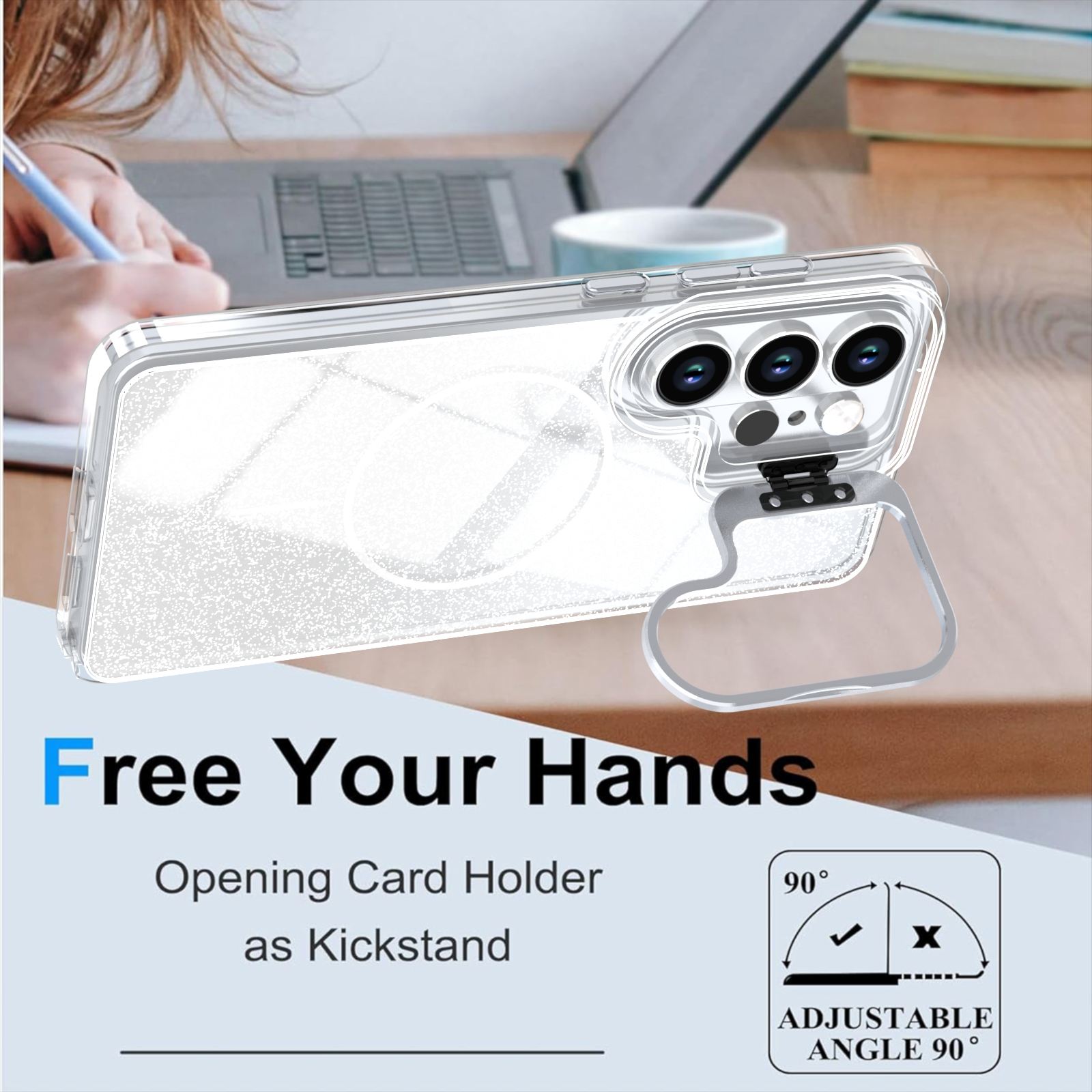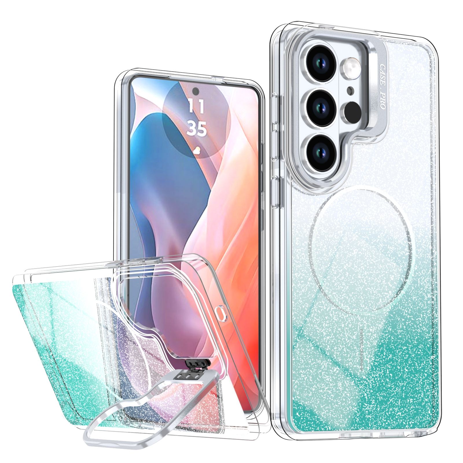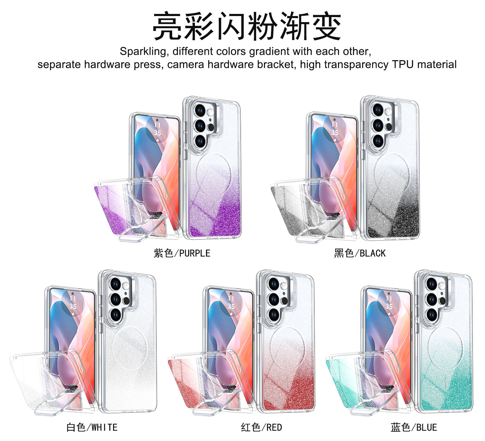 Luxury TPU+PC Glitter Gradient Lens Holder Stand Protect Case for Samsung S26Ultra S25 Plus S24 FE with Magnetic Wireless Charge