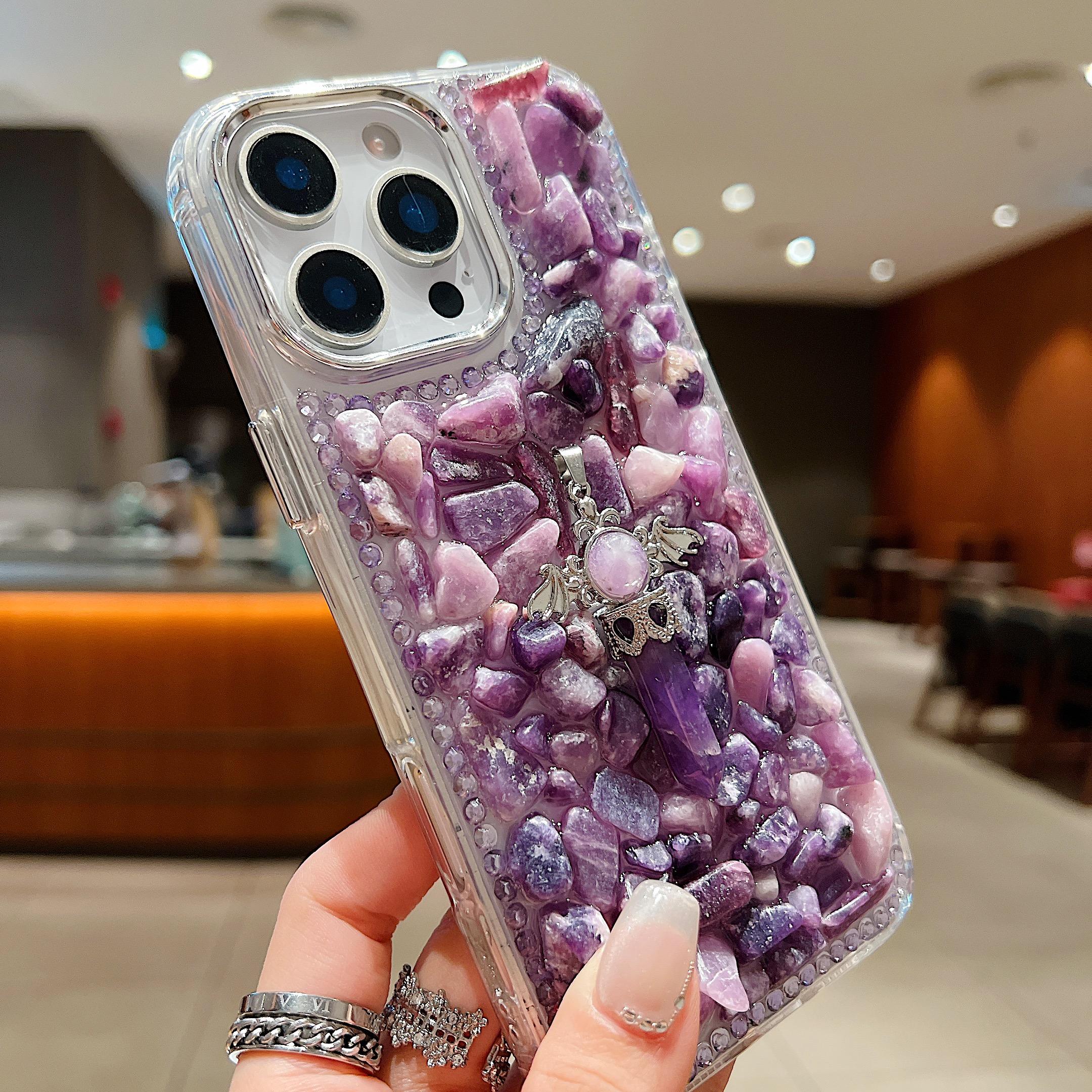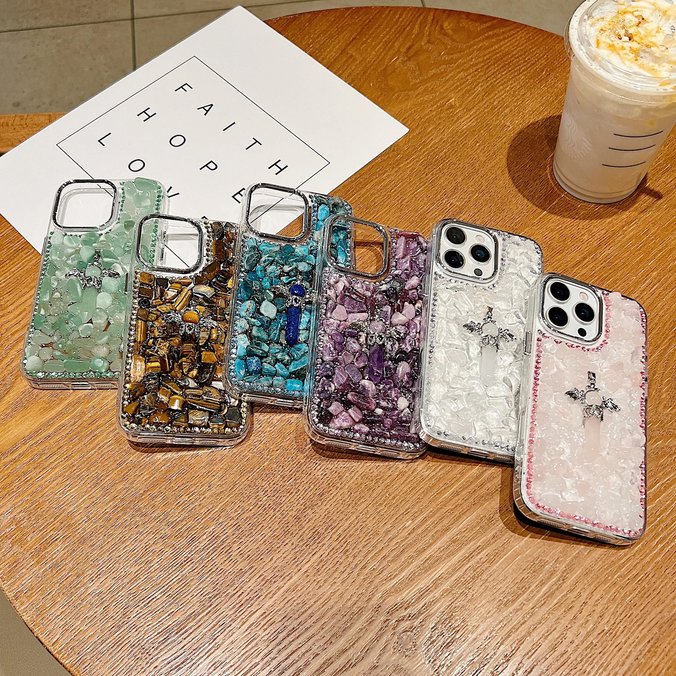 Luxury Glitter Mineral Crystal Mobile Phone Case for iPhone 17 Air 16 Pro 15 Max 14 13 12 11 Diamond Bling Back Cover