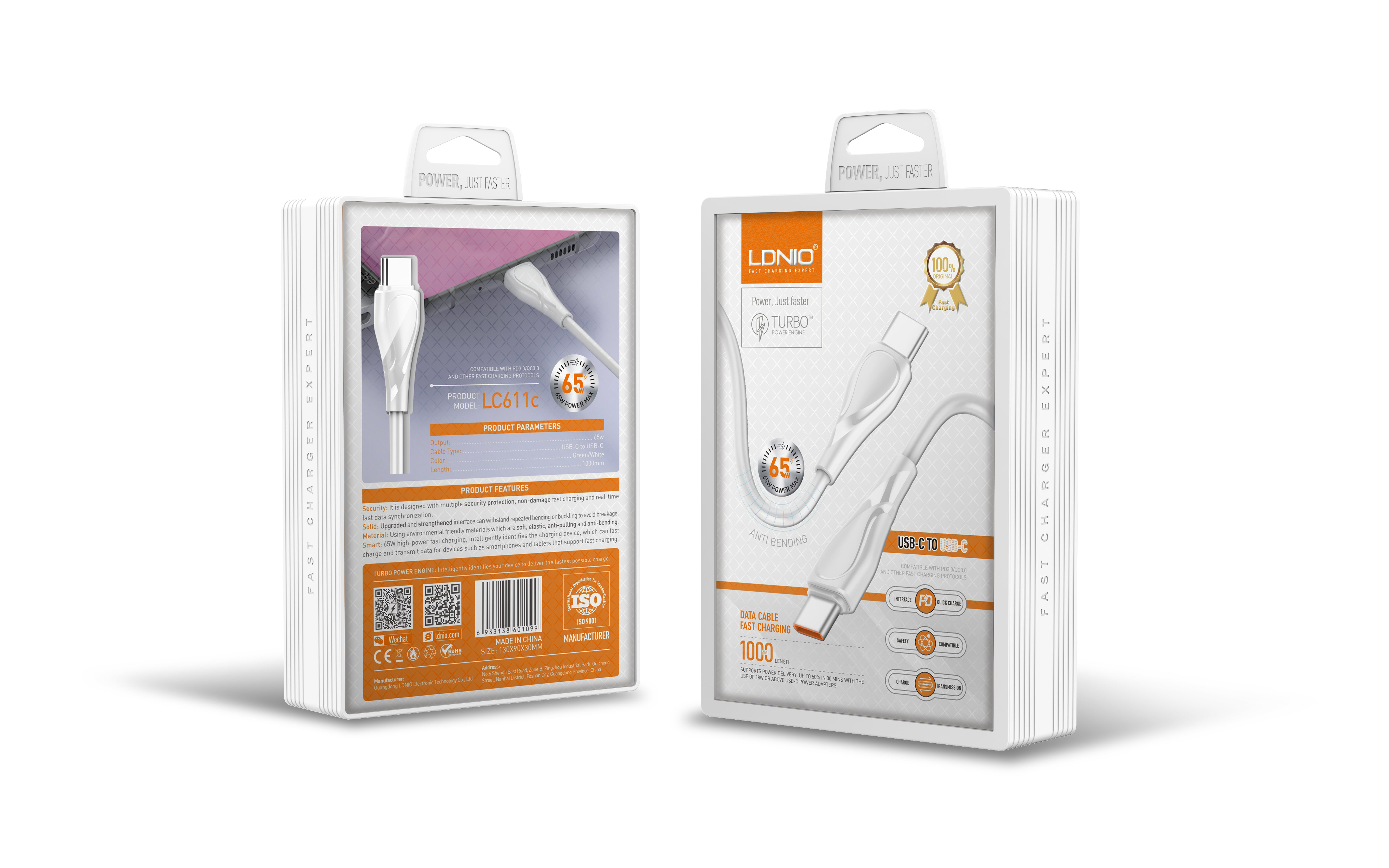 LC611C " length : 1m 65W Type-C to Type-C Cable Support PD and QC fast charging"