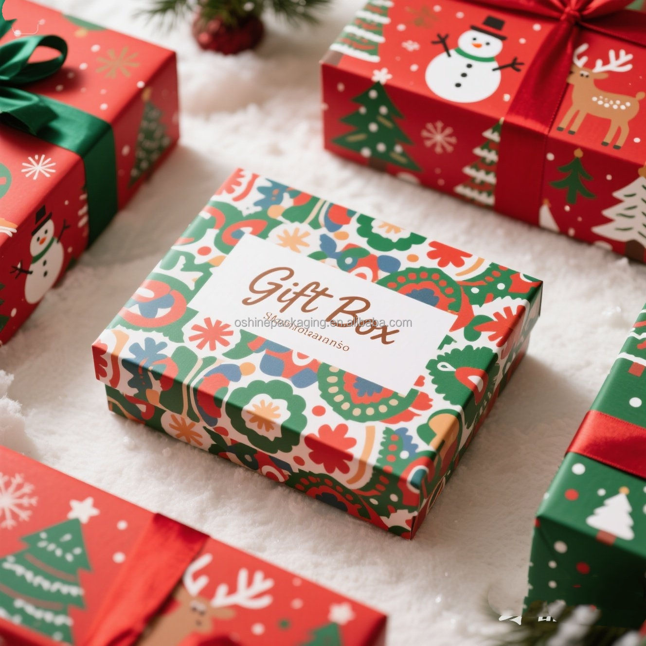 Oshine 008 Custom Recyclable Christmas Card Gift Box Full-color Printed Paper Box for Xmas Bakery Snack for Holiday Toy Doll Gif