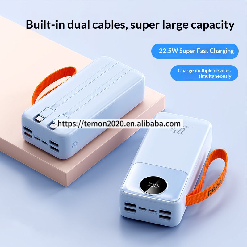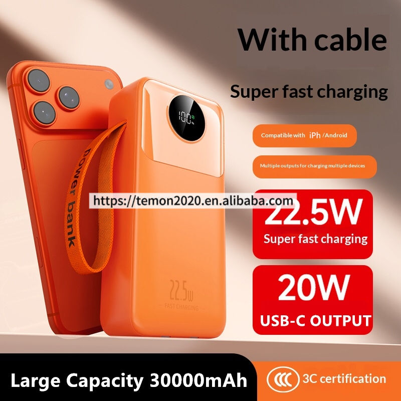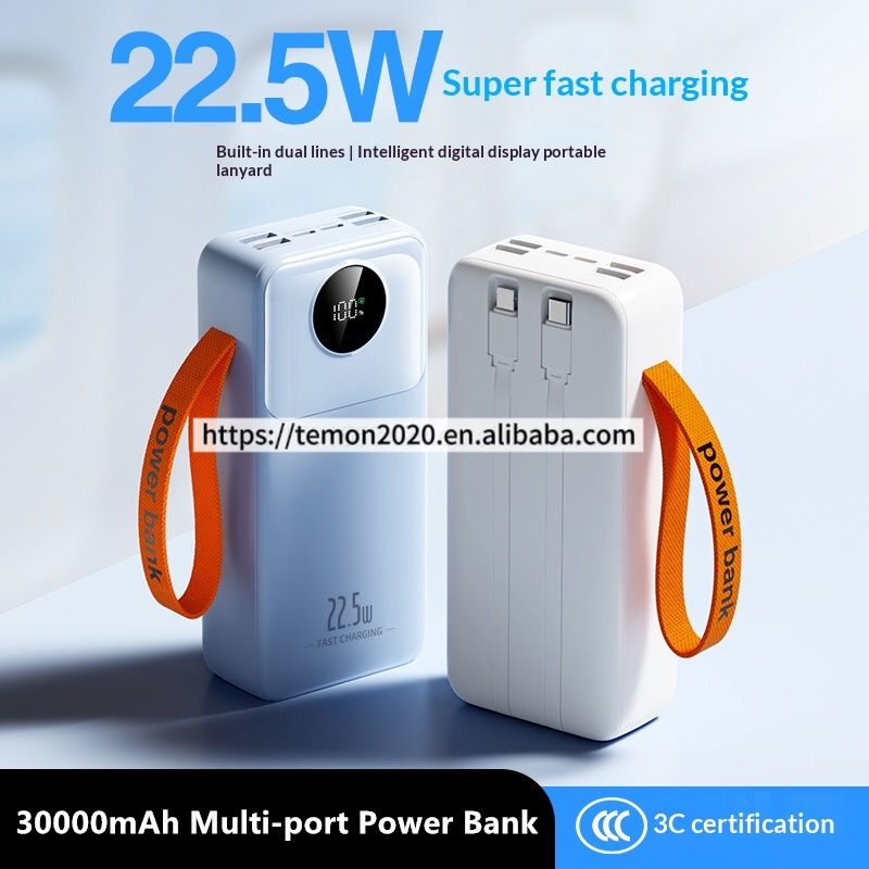 22.5W Fast Charging 30000mAh Li-Polymer Battery Power Bank Digital Display Four USB Type-C Output PD Universal Socket Portable