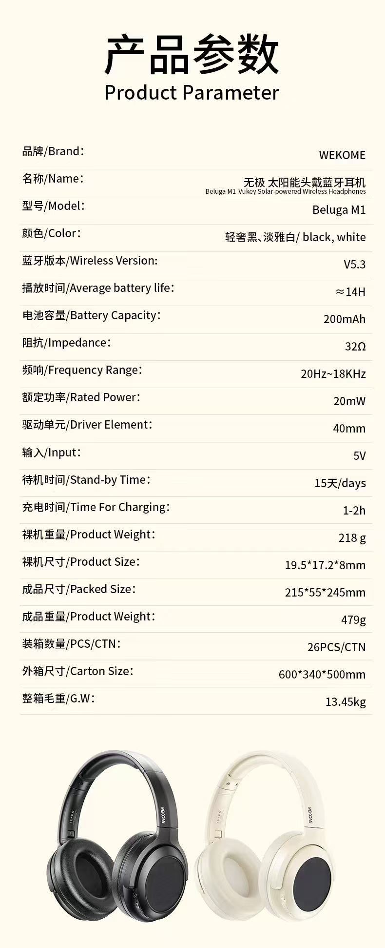 wekome Beluga M1 Vukey Solar-powered Wireless Headphones
